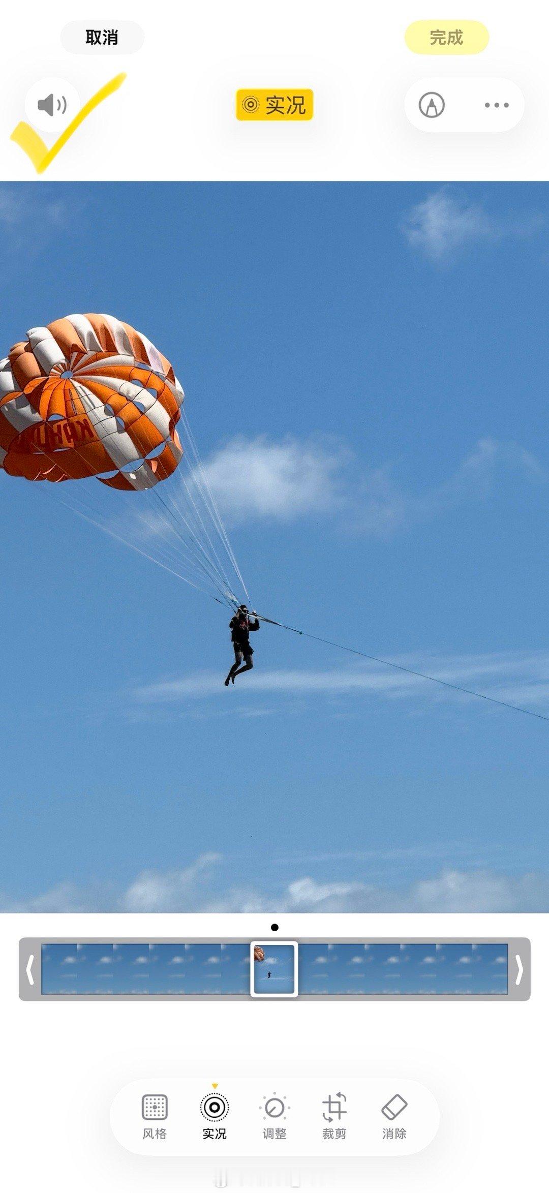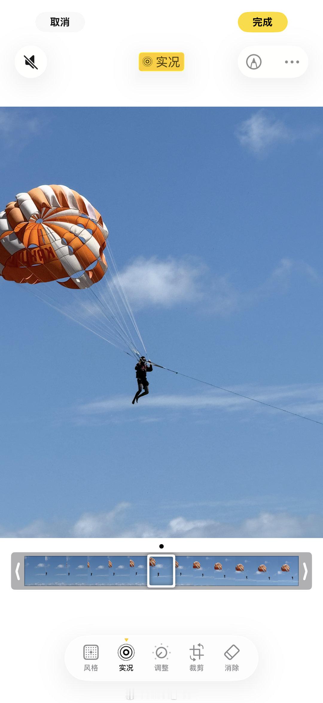 找到你满意的照片》编辑〉点到实况》左上角就有个喇叭的标识,把它给关掉就OK啦