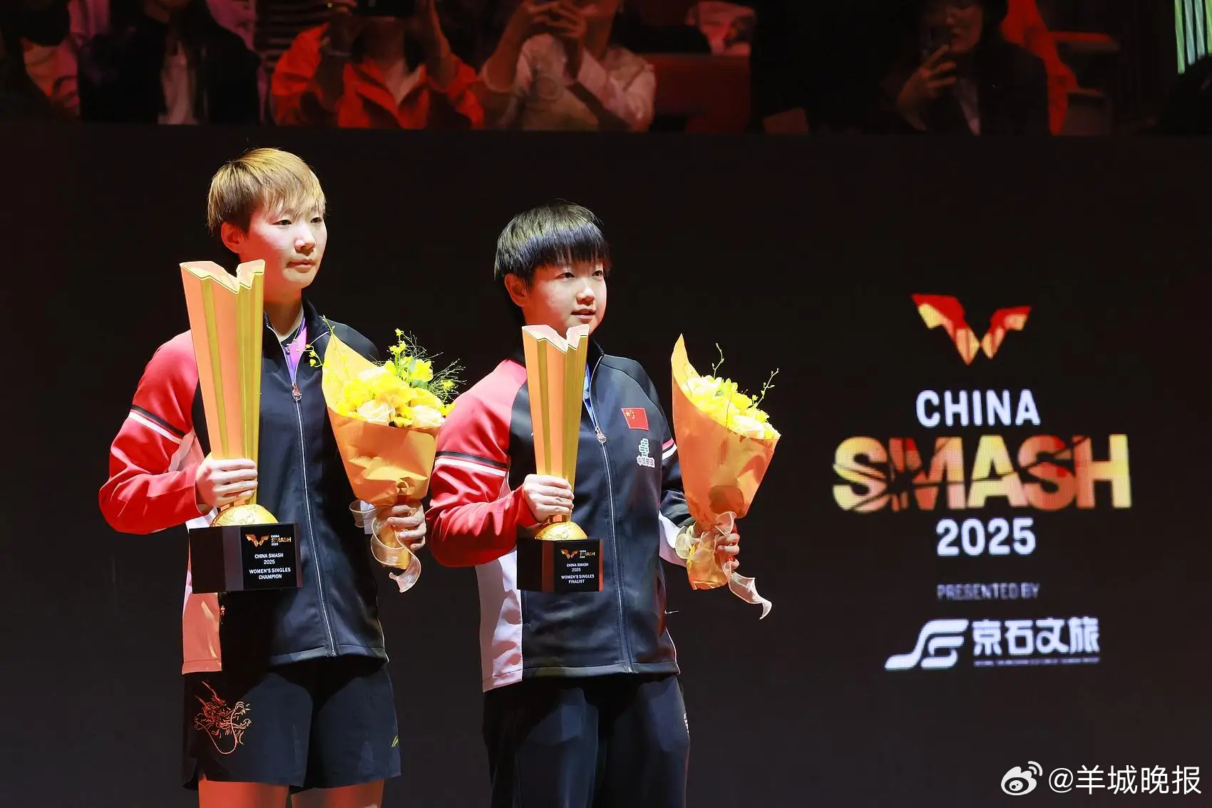【王曼昱击败孙颖莎登顶女单,本站赛事个人收获两冠】#王曼昱本站赛事个人收获两冠# 10月5日,WTT中国大满贯在北京石景山展开收官日的较量,在当天下午进行的女单决赛中,中国选手王曼昱以大比分4比2战胜队友孙颖莎,为国乒夺得本站赛事第四冠。#王曼昱4比2战胜孙颖莎#