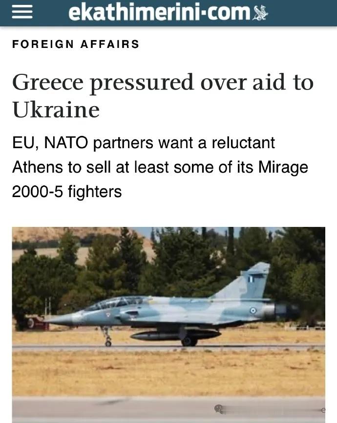 除了这些已退役的203毫米火炮和弹药外,北约和欧盟还试图推动希腊通过类似模式向乌克兰提供已退役的24架幻影-2000战斗机,这些幻影-2000大多已不具备飞行能力,但可以通过法国等国恢复战斗力,或当做零备件来源,不过,希腊政府拒绝了该提议:希腊政府很重视莫斯科的反应,可以向乌克兰提供203毫米火炮这样的过时武器,但拒绝提供幻影-2000这样的先进武器。