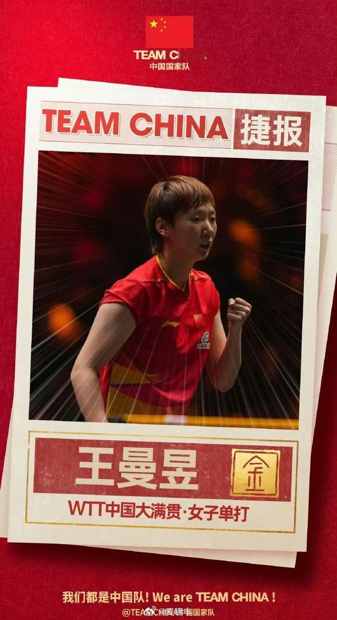 祝贺王曼昱!终于迎来属于你的时刻!王曼昱首夺中国大满贯女单冠军王曼昱夺冠