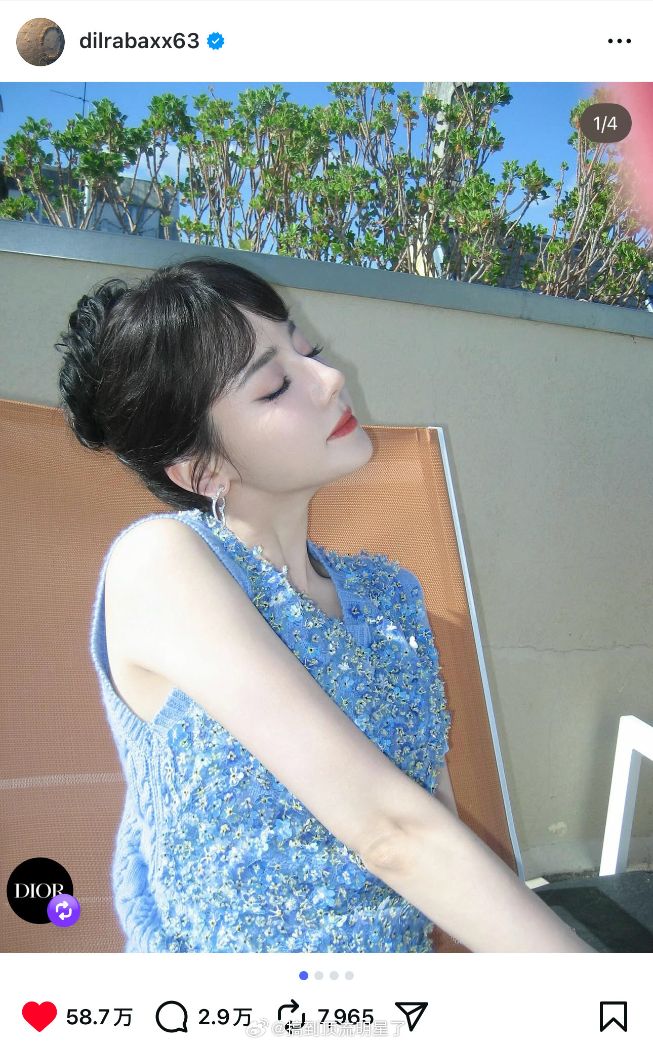 迪丽热巴Dior外网认领和转发来咯,虽然不是很在意,但是黑子想看,还是发一下吧,