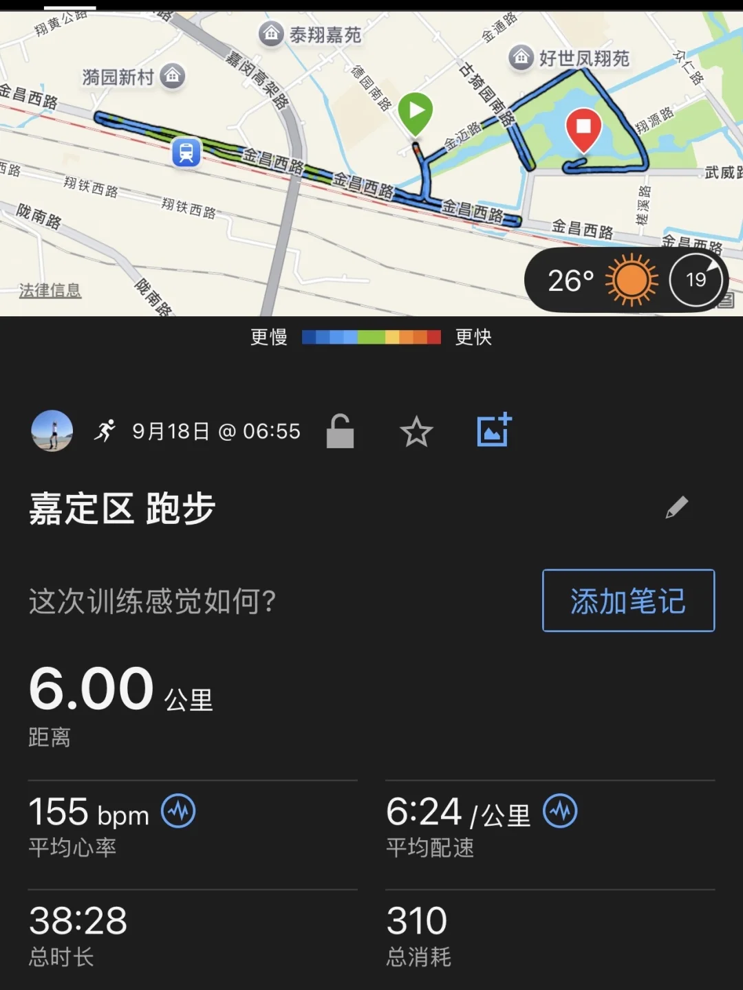 阴晴不定中跑完了6公里✅