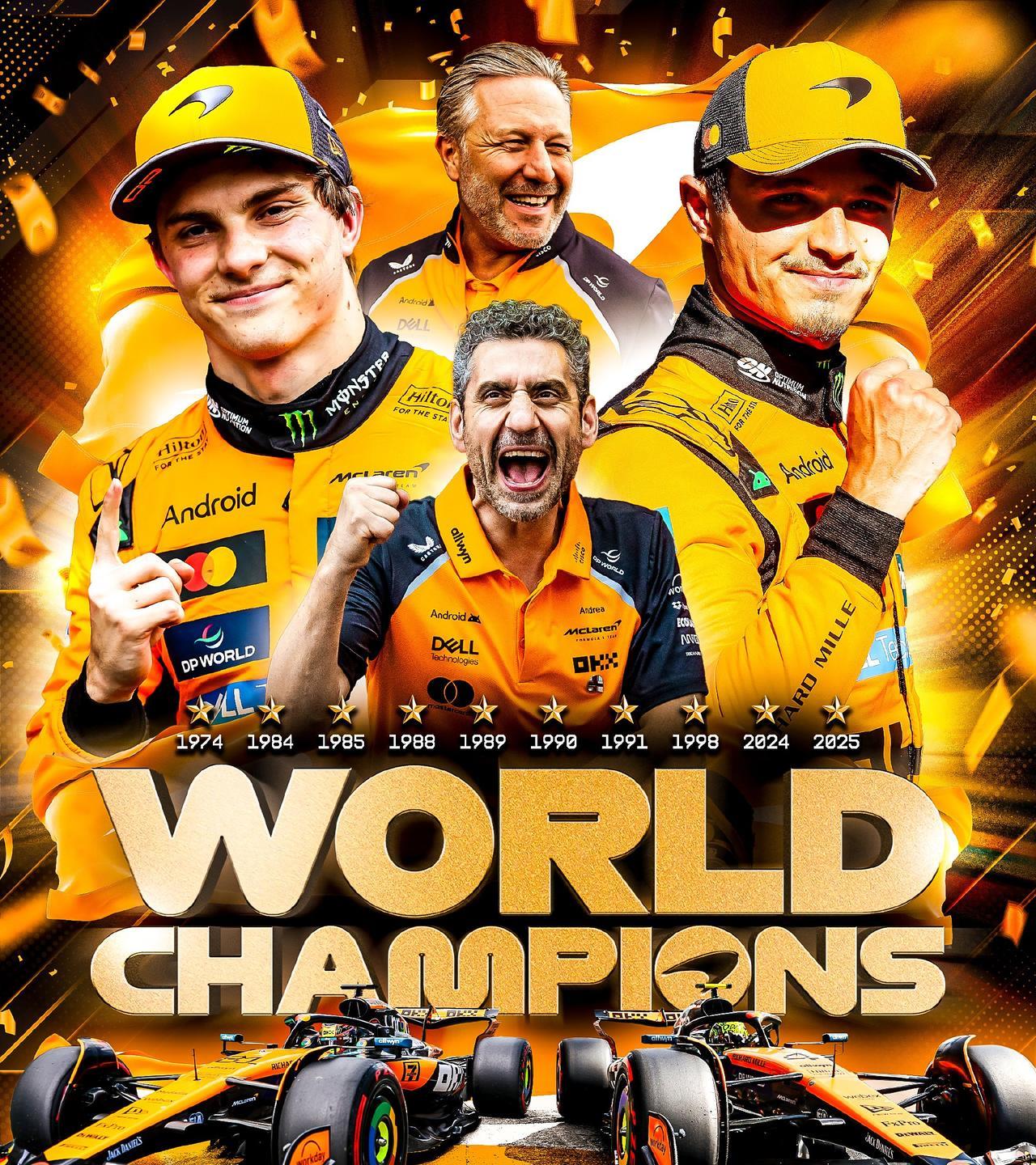 #2025F1新加坡大奖赛# 没有雨、没有安全车的新加坡是真的没意思。 拉塞尔杆位发车,最后拿下冠军;维斯塔潘「扛」下了亚军;诺里斯托着损坏的前翼端板拿下了第三! 皮亚斯特里全场好像都在拉着脸跑,第四;汉密尔顿在最后一圈赛车出现了问题,但是阿隆索从45秒追到0.4秒差距,没能超车,但拿下了「最佳车手」;塞恩斯后排发车,最后拿下了一个积分,非常棒了! 最后恭喜一下迈凯伦,提前6站拿下2025年F1车队总冠军!【来自懂车帝车友圈】