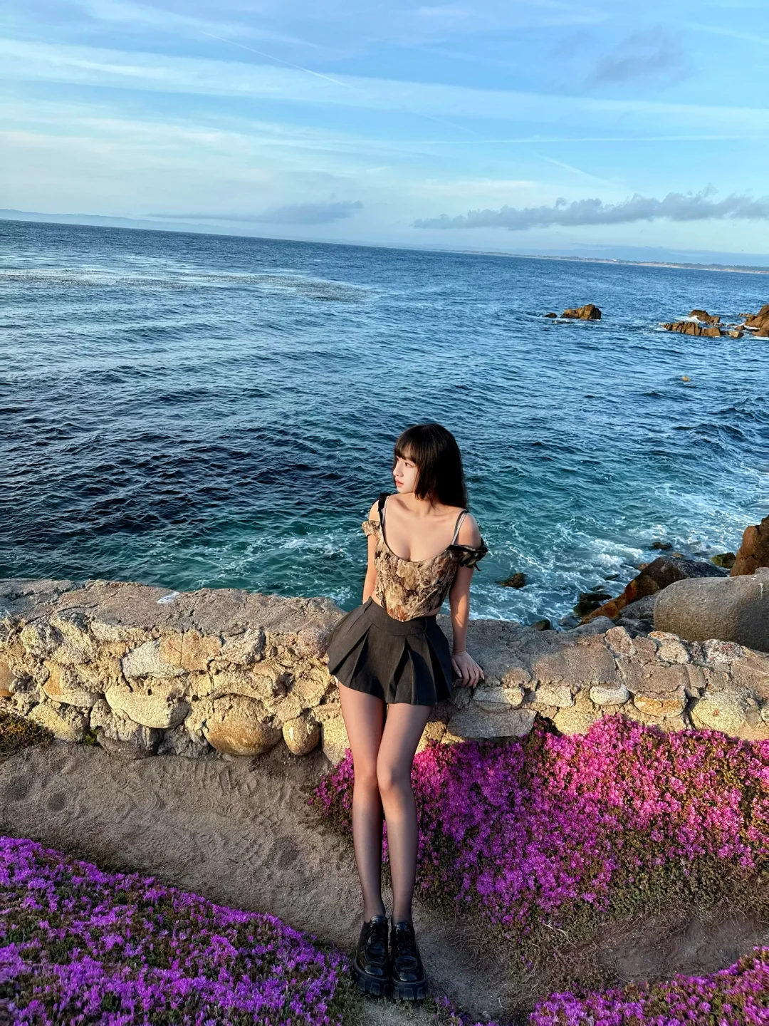 沿着海边走,从Lovers Point到Perkins Park,路上满是粉色的花朵,连岩石上都能看到小花点缀,好像被春天包围着一样🌷💫