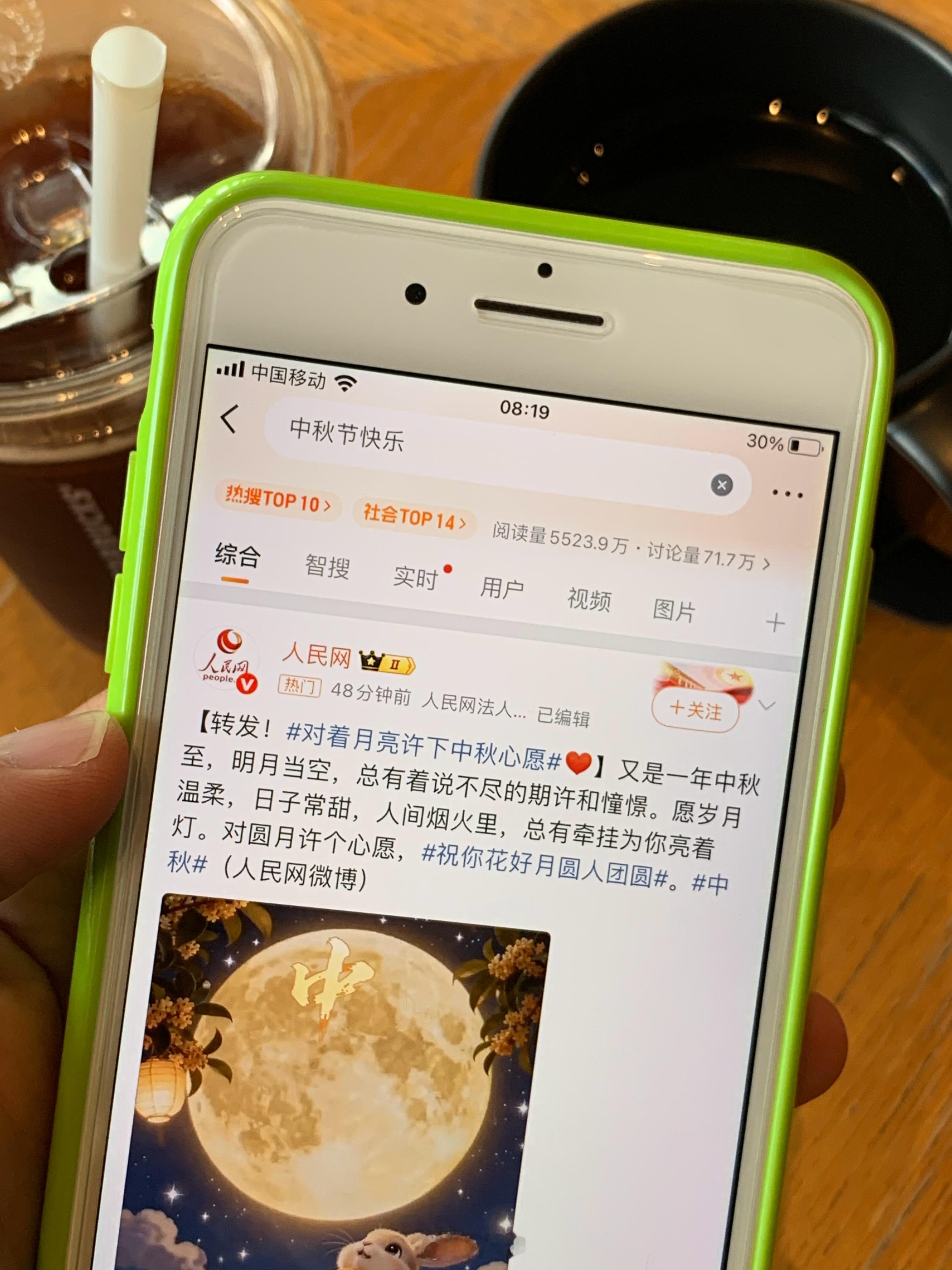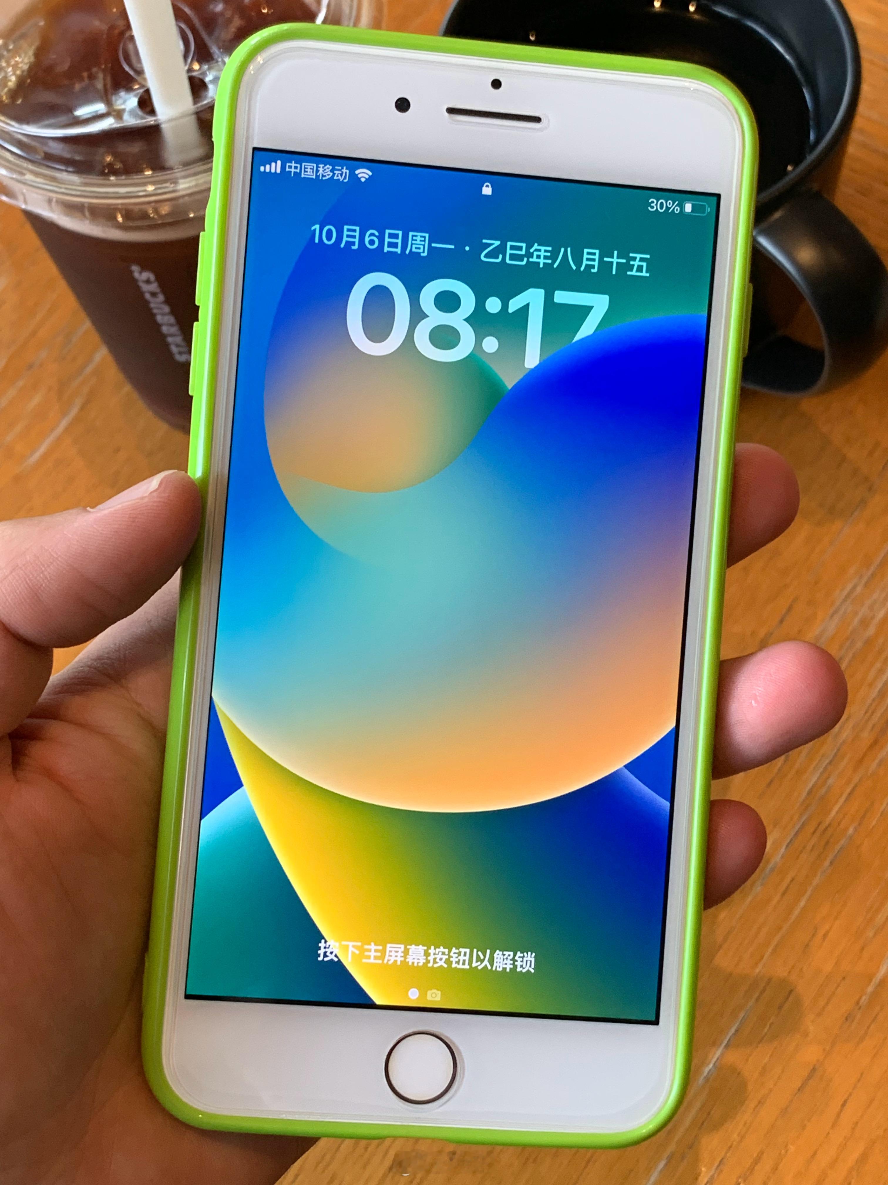 中秋佳节也要早睡早起喝冰美式刷微博看好看的小姐姐研究home键iPhone保持作