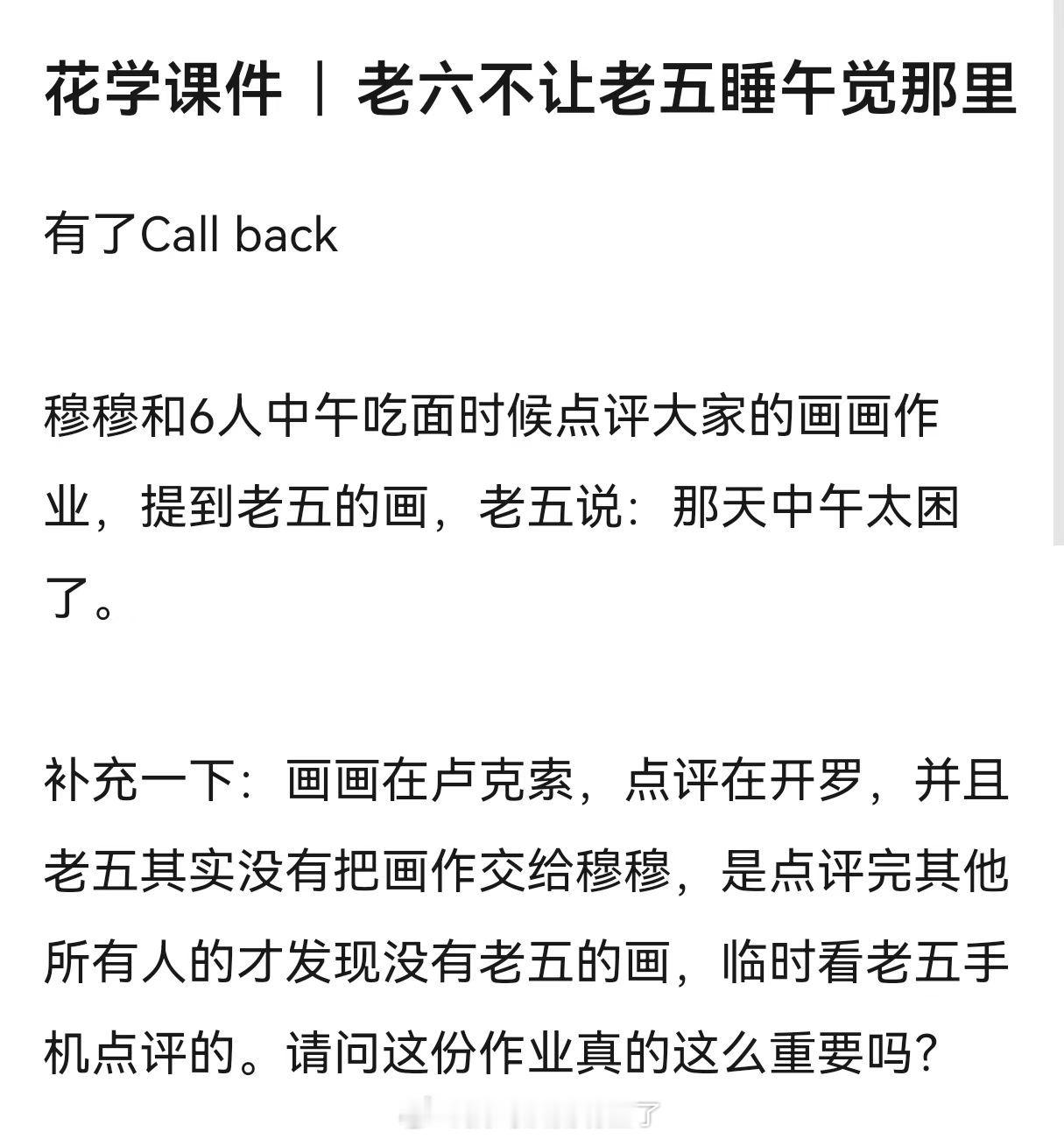 为了一份第二天才要交、最后一天才点评的作业,非要把人薅起来下午立刻完成,还是明知道他低血糖+严重缺觉的情况下,硬是不让龚俊睡觉。而且当天晚上还要去夜市,还有拍摄环节,这种人真的太恐怖了[惊恐]