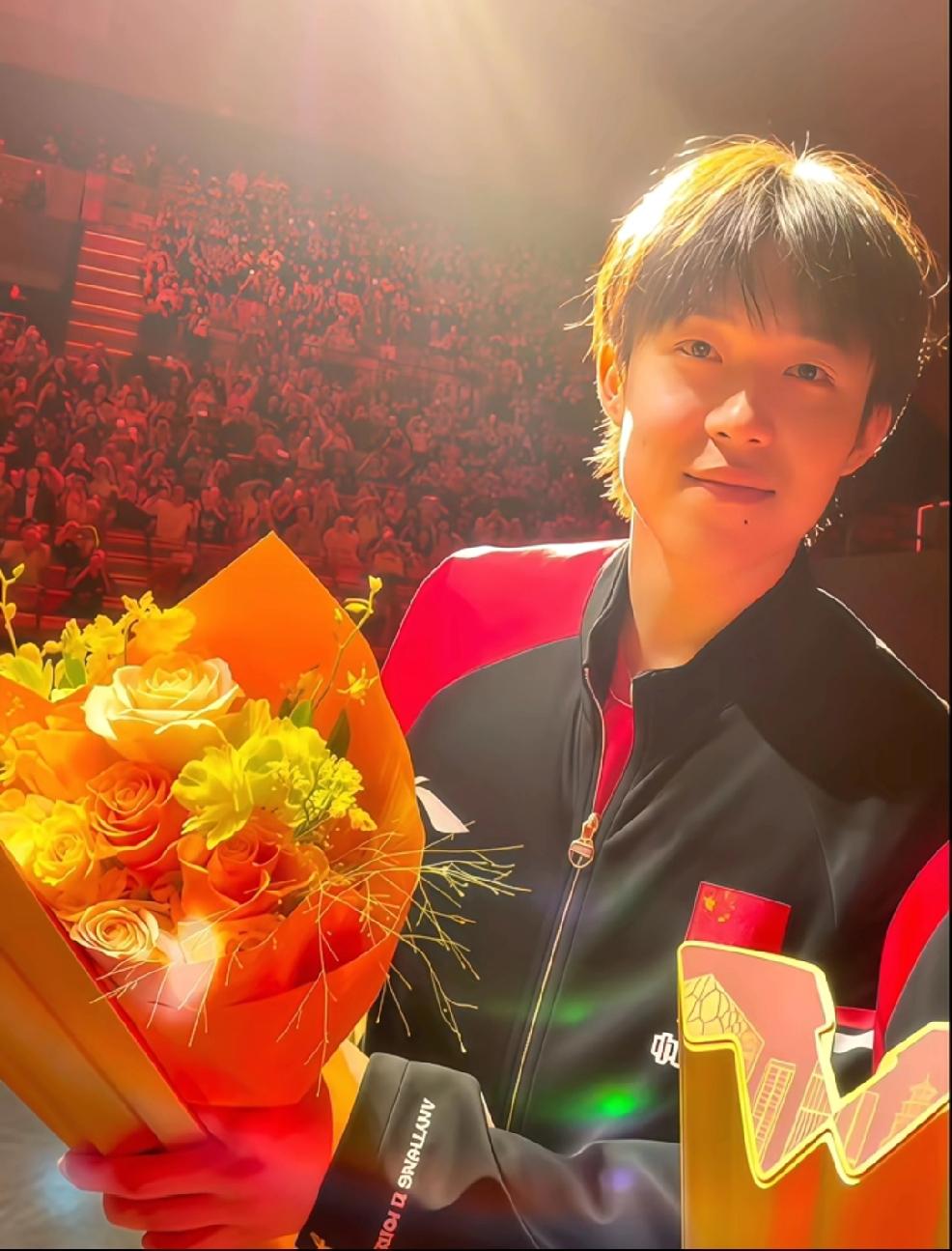 央视报道了昨天王楚钦半决赛后, 一个人盖着自己的大毛巾, 在场的休息凳上睡着的画