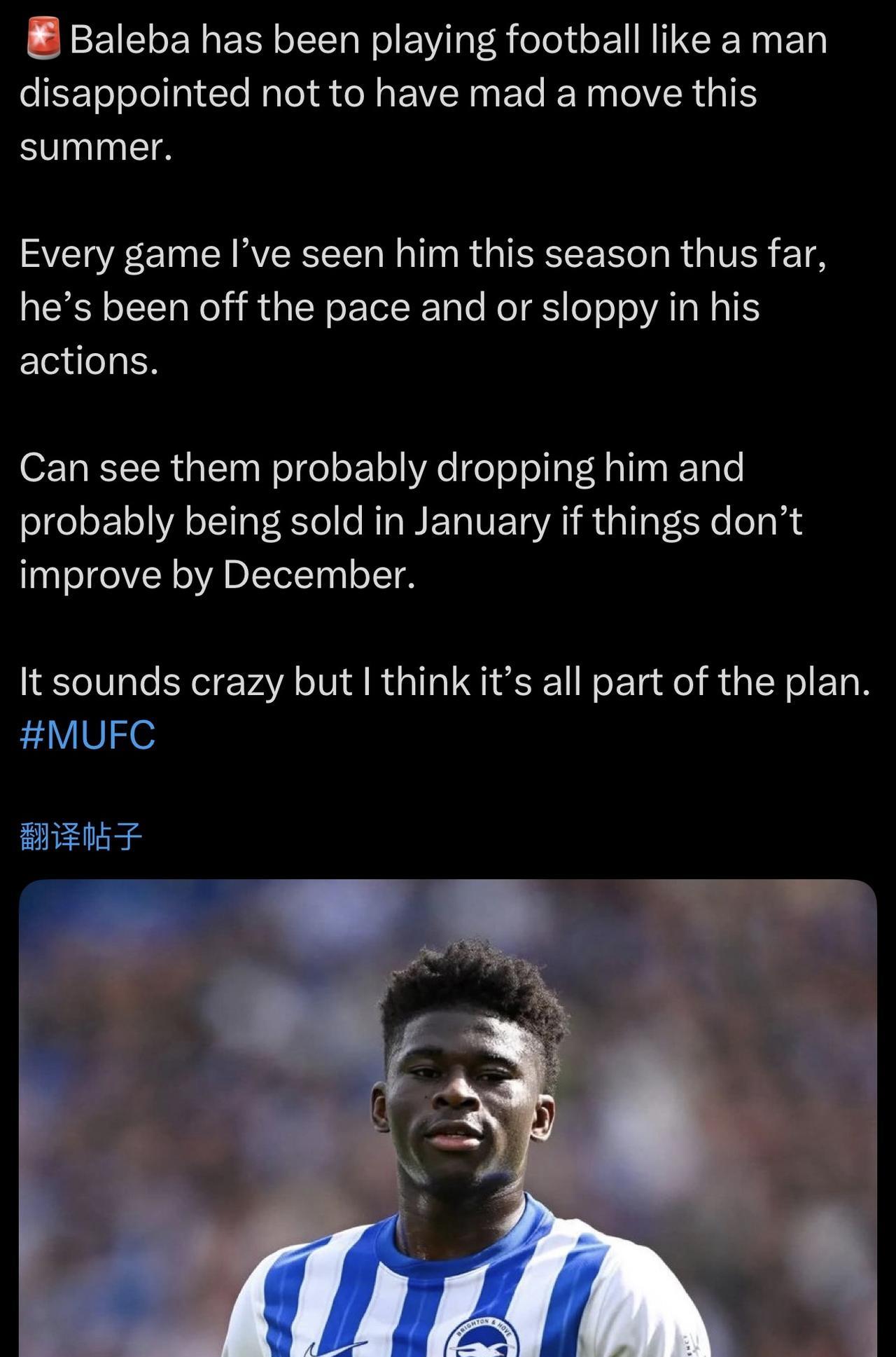 媒体认为:巴莱巴在故意摆烂,逼布赖顿在冬窗卖掉他。