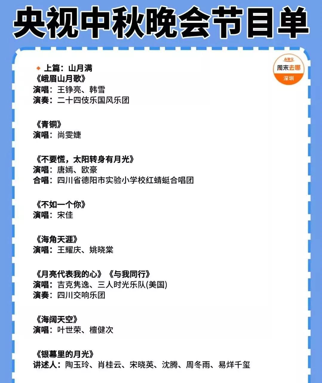 央视中秋晚会即将开始。 今年有三大看点: 第一,今晚是谢娜担任主持人,期待她今晚能不能把自己独特的主持风格发挥好。 第二,今年的中秋晚会请了格莱美提名组合「三人时光」(Time for Three)与中国民乐演奏家合作《玫瑰人生》 第三,周深将以中俄双语来演绎《归来》,再配合AR技术还原的战场硝烟与川江号子声,非常期待他的演出。 你们期待谁的演出呢?