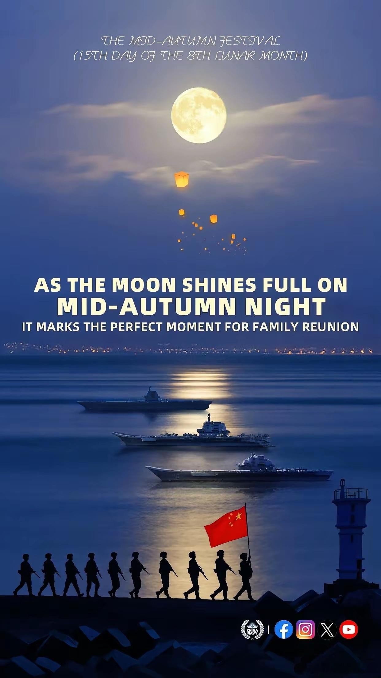 太喜欢中国海军这张中秋海报了,预示着中国海军“三航母时代”即将到来,看来福建舰服役近在咫尺了。 ​​​