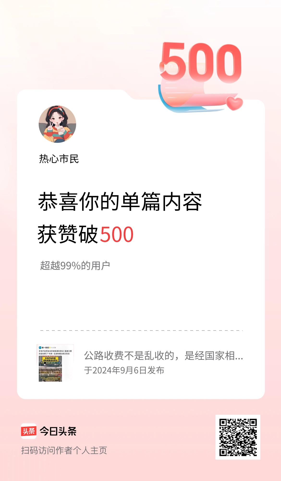 单篇内容获赞量破500啦!
