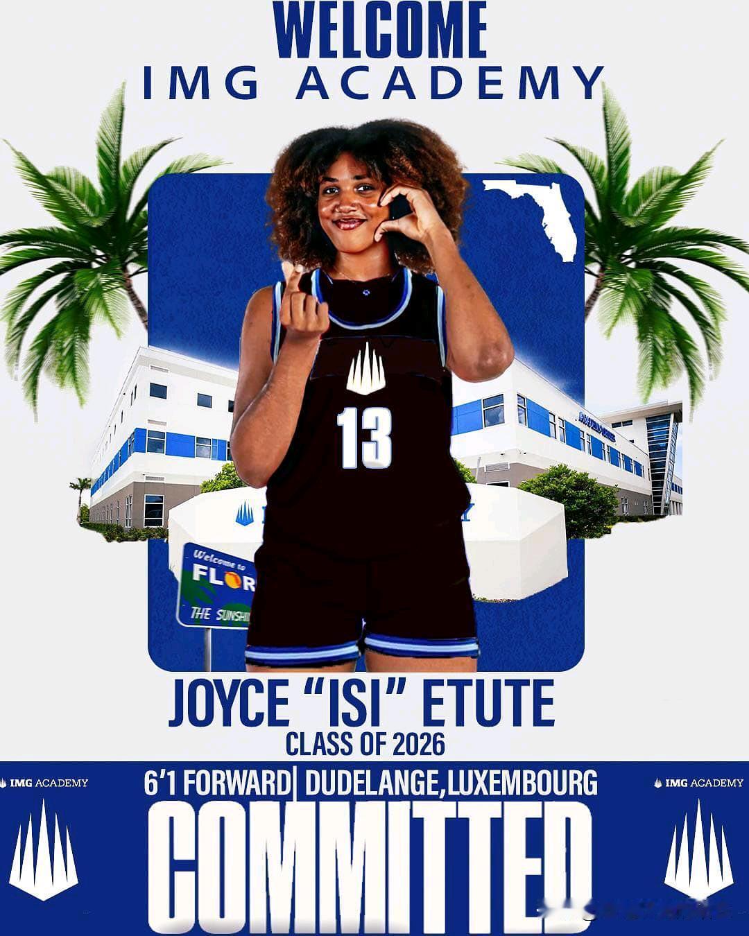 卢森堡前锋Joyce "Isi" Etute宣布承诺NCAA女篮 UCLA,棕熊这届收到的第一位加盟者,拥有尼日利亚的血统,高四赛季就读于佛罗里达州IMG学院,出生于2008年7月,2024年U18欧青赛A组场均33.5分钟得到18.7分13.4篮板,赛事的得分王与篮板王,不过卢森堡仅排在垫底的第16名。