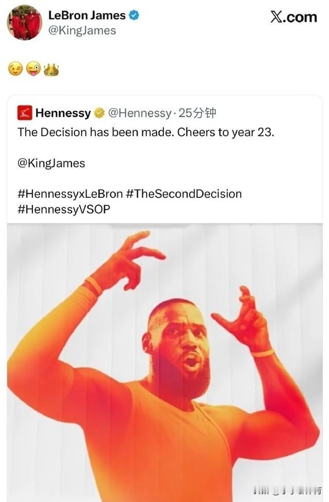无关退役,詹姆斯决定中的决定引球迷骂声一片! 今日,詹姆斯更新了自己的社交媒体,回应昨日决定中的决定,但让球迷意想不到的是詹姆斯的决定二并非是退役,而是将自己的天赋带到著名白兰地品牌轩尼诗。 虽然詹姆斯通过决定二收获了极大的流量和曝光度,为自己与轩尼诗的合作打下了坚实的基础。但此举也让很多球迷不满,纷纷质疑詹姆斯的动机,感觉他正一点点败光自己的好感。 当然,也有忠实球迷表示还好,詹姆斯的决定二只是虚惊一场,未来还能继续看詹姆斯打球。