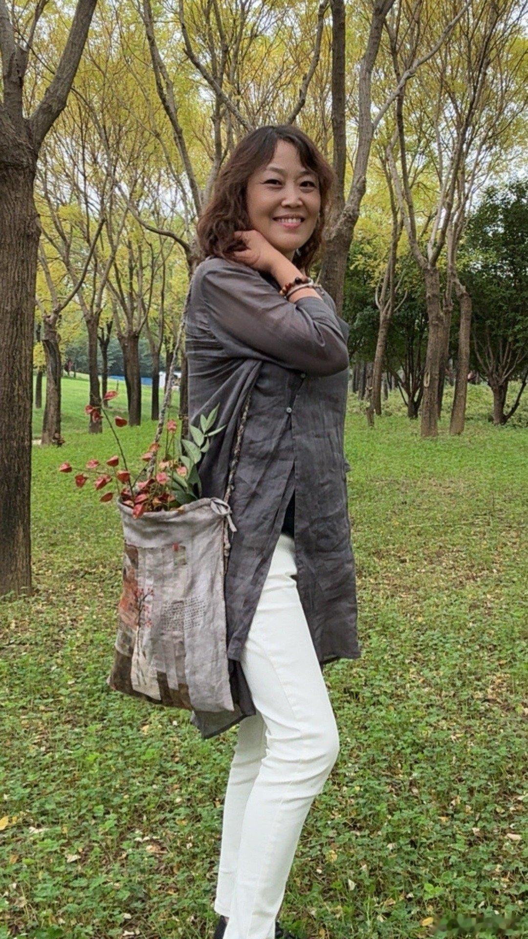 在家扎染的丝巾一直没机会戴,北京还是有点热。今天要离开北京回家了,拍照留念[可爱