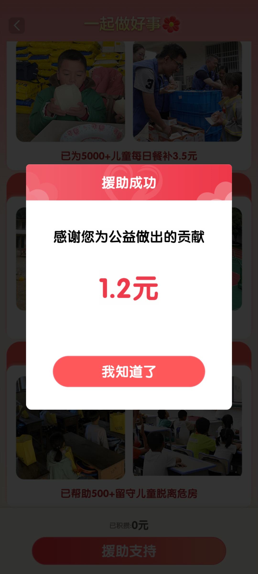 勿以善小而不为,最近忙里偷闲,玩了一个领红包的小游戏,其实我知道这种游戏多数是骗子,基本上都是几块几毛,而且大额也提现不了,就是让你看视频广告,让你消耗流量,也确实是如此我提现了两次大概2块多,然后提现300,说72小时到账估计是没有的! 在今天赚钱这么难,一个小软件怎么可能给你那么多零钱,醒醒吧! 唯独值得寄托的就是这个公益,说看视频就可以给爱心捐款,不管真假,我选择一项,至少做了一份贡献,我一看红包又攒了一块了!工作之余用点流量点点到也行,但大家不要模仿因为太少了,你在头条发一条火的头条都可能会有几块钱,而在这种软件上拿到几块需要你付出大量的时间和精力真是不合适!
