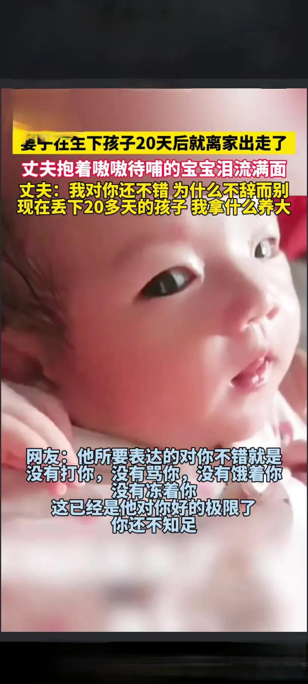 妻子生下孩子后,20天离家出走。 丈夫抱着婴儿在街头痛哭,质问:我对你有什么不好,你为什么不辞而别?妻子离家出走,丈夫如此伤心,实在令人意外。这也能说明一点,丈夫心里还是爱着妻子的,只是爱了没有用对地方罢了。 你说,我对你这么好,你为什么要离开我?这种“好”真的可以用来挽留吗?在婚姻中,“好”与“爱”不是同一个概念。“好”只是给予基本的生存保障,比如衣食住行。“好”的最高级表现,是把对自己的要求放低,把对伴侣的要求提高,以至于忘记伴侣也是一个独立的人,有自己的喜怒哀乐和生老病死。“好”的这种无私奉献,在很多人看来,就是爱。 可是,这种“好”能给人温暖吗?温暖的标准是什么?应该是心里感觉到的吧。夫妻之间的责任,大多是这种“好”构成的;夫妻之间的爱,却不能缺少温暖的陪伴。 可惜,有的人把责任当作爱的表现,习惯了责任,就觉得习惯就是深爱,忘记了付出温暖。责任和爱,在婚姻中都是不可缺少的元素。 但是,当婚姻沦为只讲生存底线时,还有谁能感受到归属感呢? 麻烦看官老爷们右上角点击一下“关注”,既方便您进行讨论和分享,又能给您带来不一样的参与感,感谢您的支持!