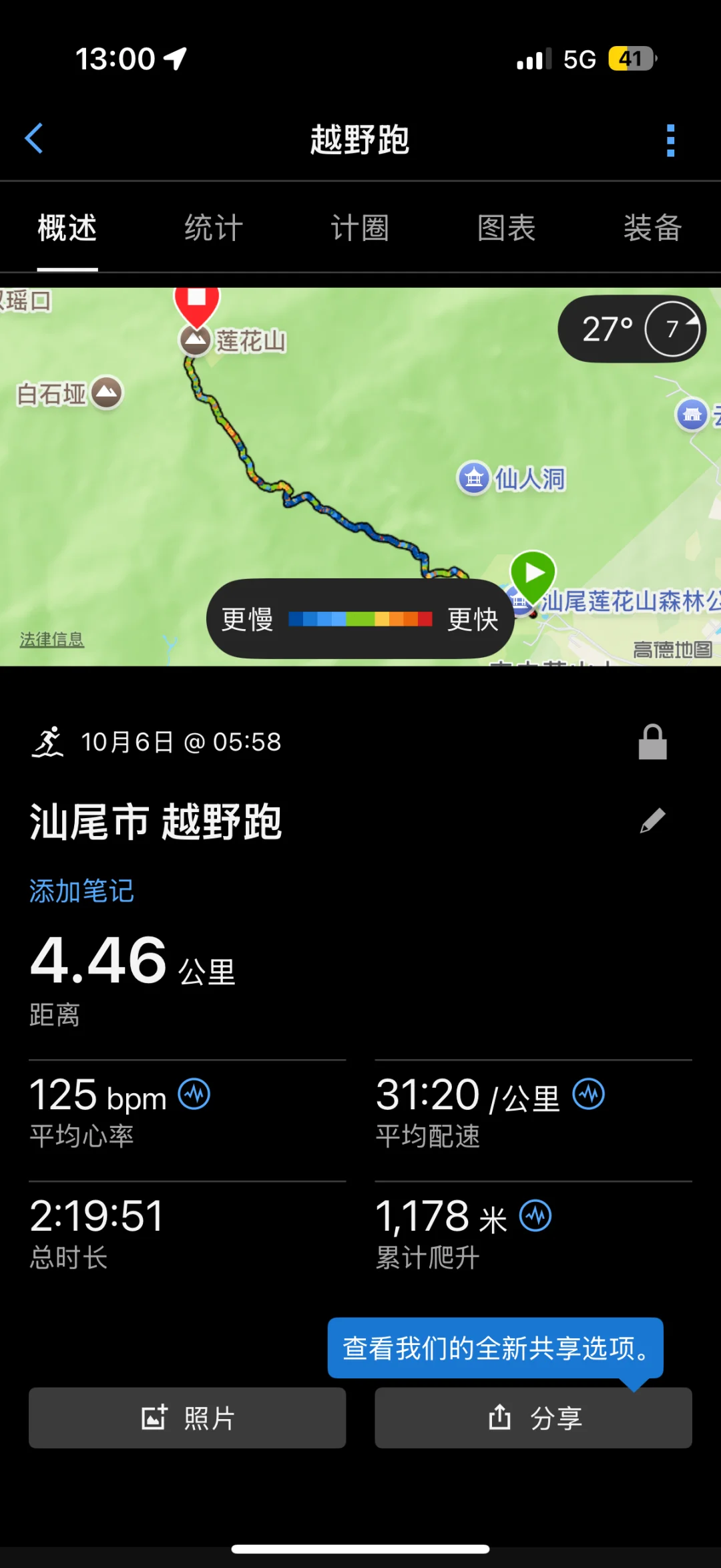 ⛰️国庆在汕尾老家登上4.5公里爬升1200米的莲花山