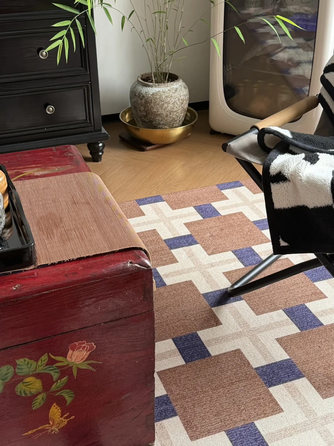这次回老家最惊喜的 应该是老妈自己刚装的房子 收藏了30多年的梨花木大箱子 是她当年的嫁妆 房子换了很多但这件她一直舍不得扔 被我吐槽了无数次 被她搬来放在新房的客厅里 第一次发现:原来它好漂亮啊! 和老妈的审美终于同频了