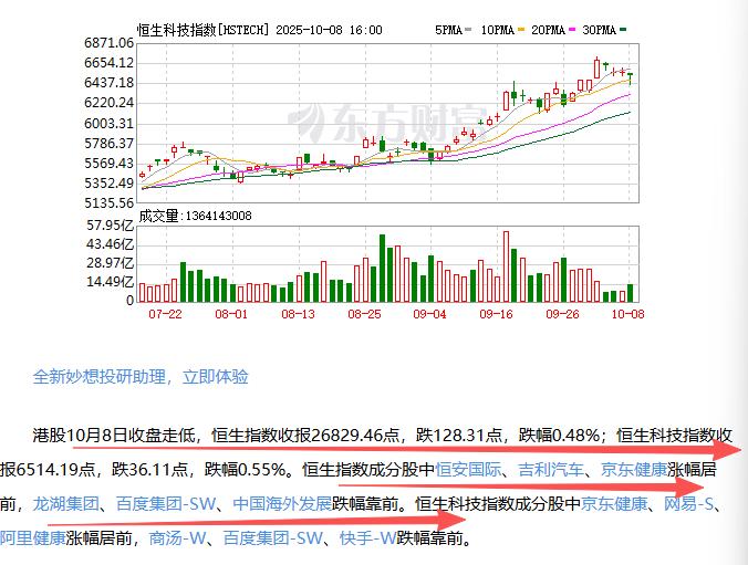 十月开门红,几率有多高呢?去年十月开门红,但冲高回落;2023年,十月第一个交易日跌了;2022年呢,跌了1.66%,但随后连涨了5日;2021年呢,十月开门红,但冲高回落;2023年之前3年处在下降通道中,而当前的大A,经过近半年来的上涨,现处在横盘震荡整理中...... “漫长”的假期今日结束了,大A明日开市了,股民们应按捺不住那颗躁动的心了吧? 持股过节的,没有人不期盼着明日收红包吧?而持币过节的,估计都想着捡拾些“便宜”的了。而港股今日的表现差强人意,科技股跌了。大A自去年9.24行情以来,基本上走出了自我的节奏,受外围的影响弱了,十月开门红的概率还是蛮大的.....