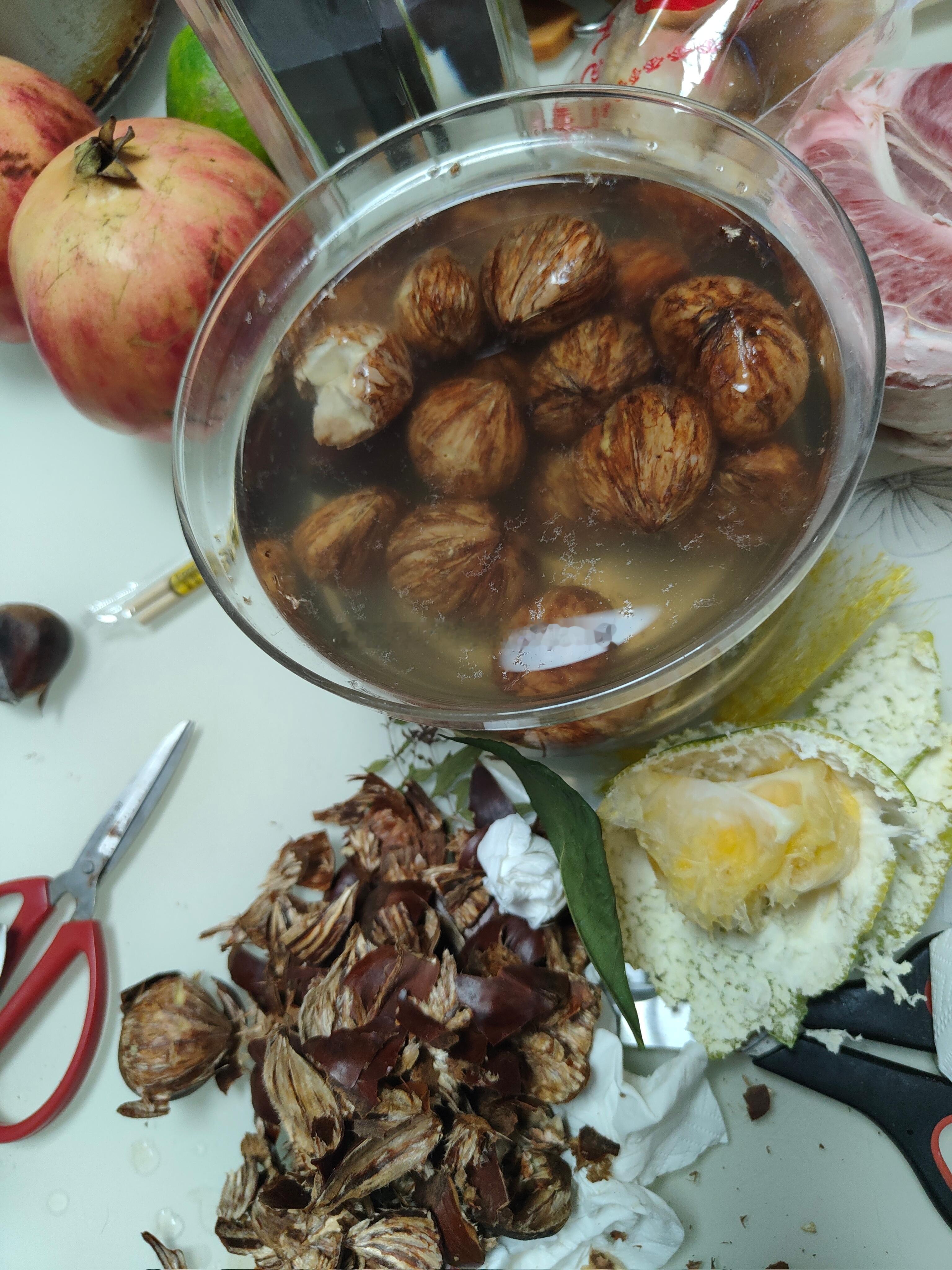 准备二次浸泡,剥掉那层毛,谁知道这板栗先把我啃了[泪奔][泪奔]硬壳直接扎进我大拇指的指甲里面,还好我用巧力,要是蛮力,估计半夜要去急诊室处理了,真的是服了[无聊]