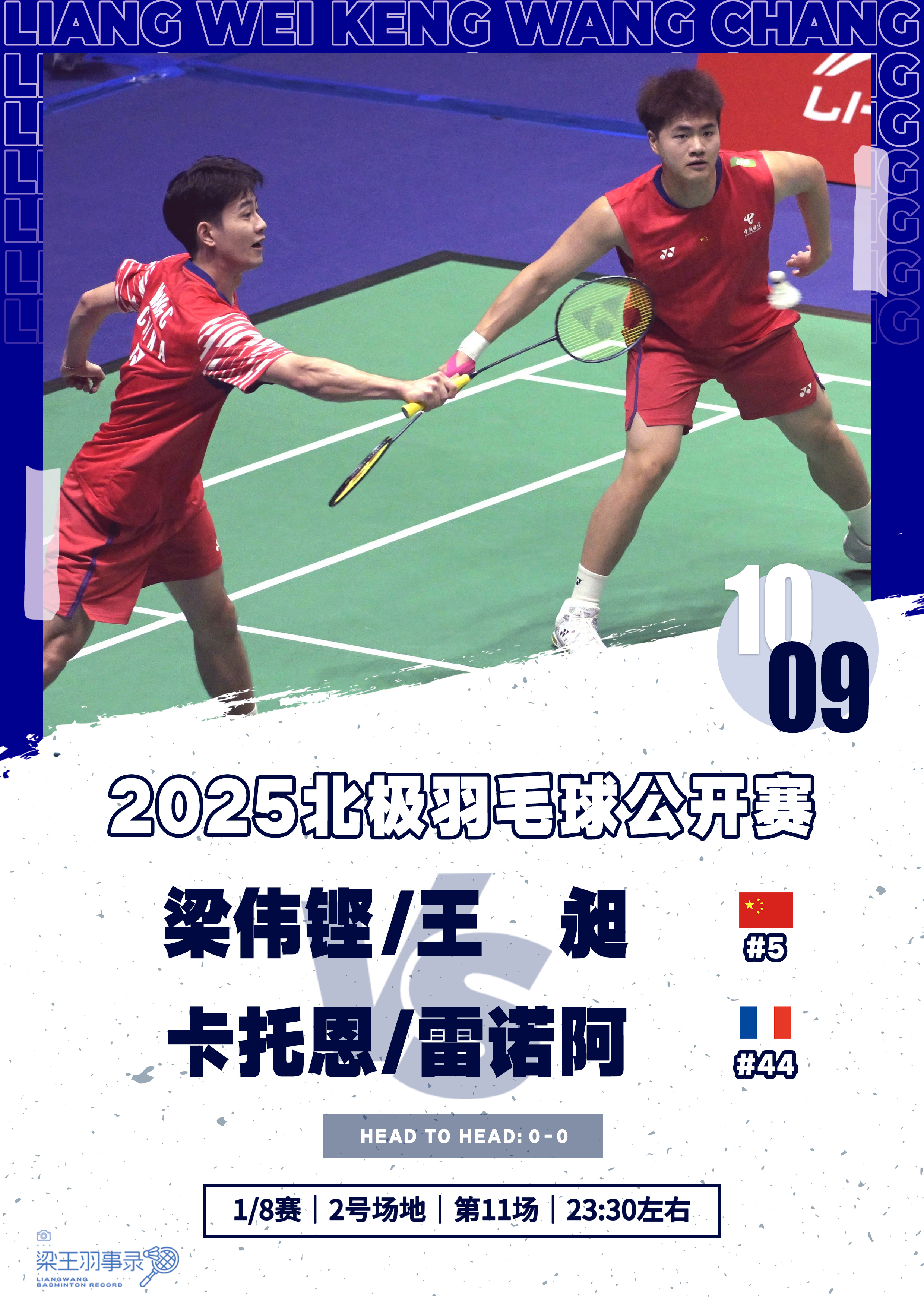 1/8赛:🇨🇳梁伟铿/王昶VS卡托恩/雷诺阿🇫🇷