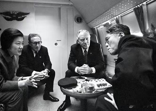 王铎:飞机上的章含之,1972年。 这是一张1972年的老照片,章含之正好37岁。 她与乔冠华陪同着刚刚来中国的,美国国家安全助理基辛格博士。 你感觉章含之老吗?她长得漂亮吗?还像洪晃她妈吗?