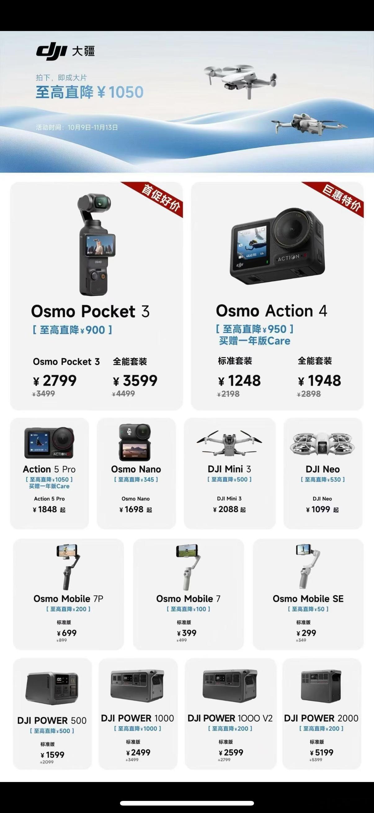 用了一年的大疆Action4在国庆期间被我出掉了,卖了个好价格,没想到又被大疆背刺了,每年618、双十一这一波大降价真是几家欢喜几家愁。最近有很多朋友问我买pocket3,我说你们等等,9号大降价再买,这不大疆又是老套路,官网便宜的标准版缺货,等不及的可能买全能套装了[允悲][允悲]