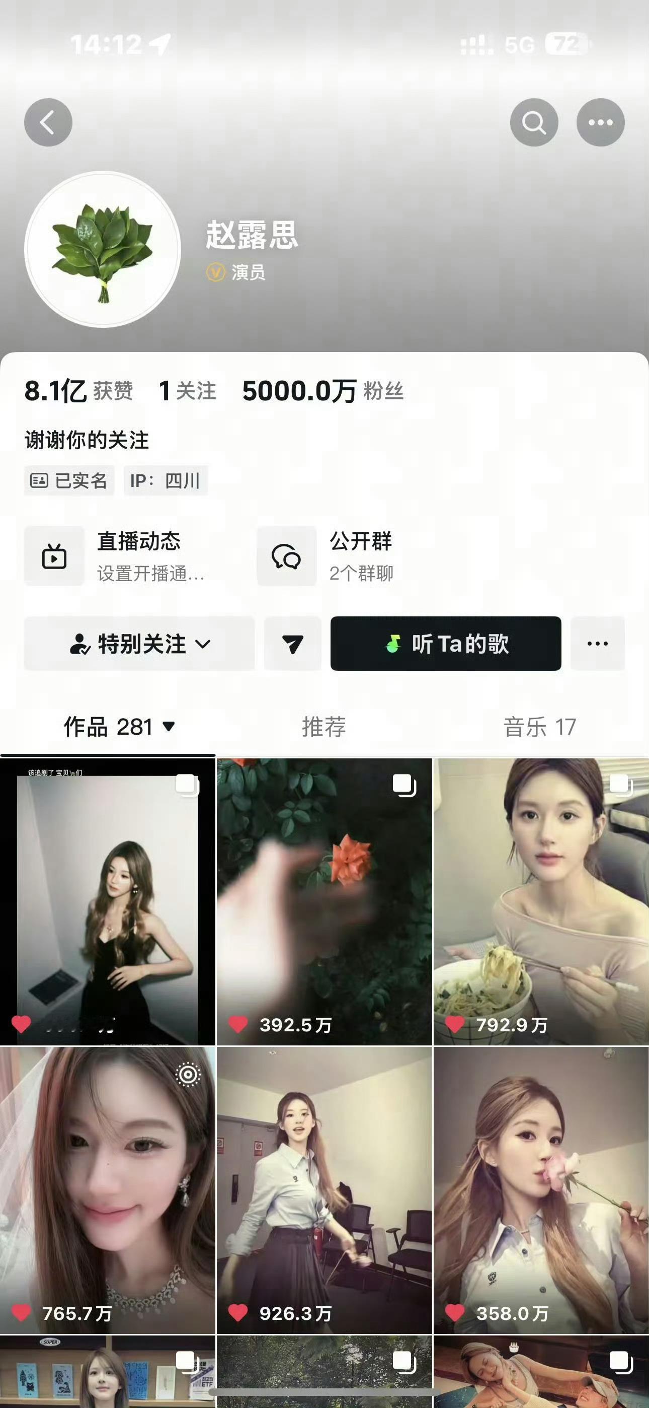 现在赵露思🫘和🍠粉丝数都是女明星第一