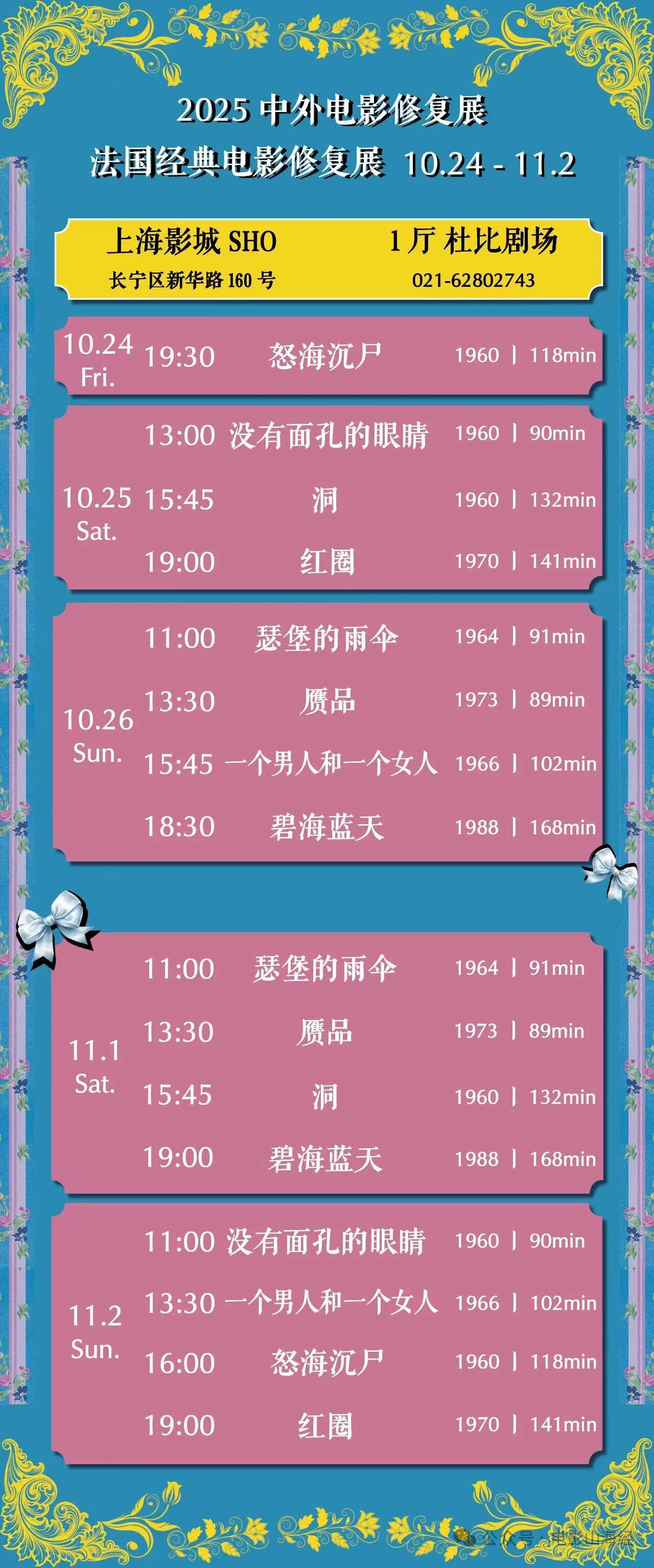 “法国经典电影修复展”将于10月24日~11月2日举行,上海影城SHO1厅杜比