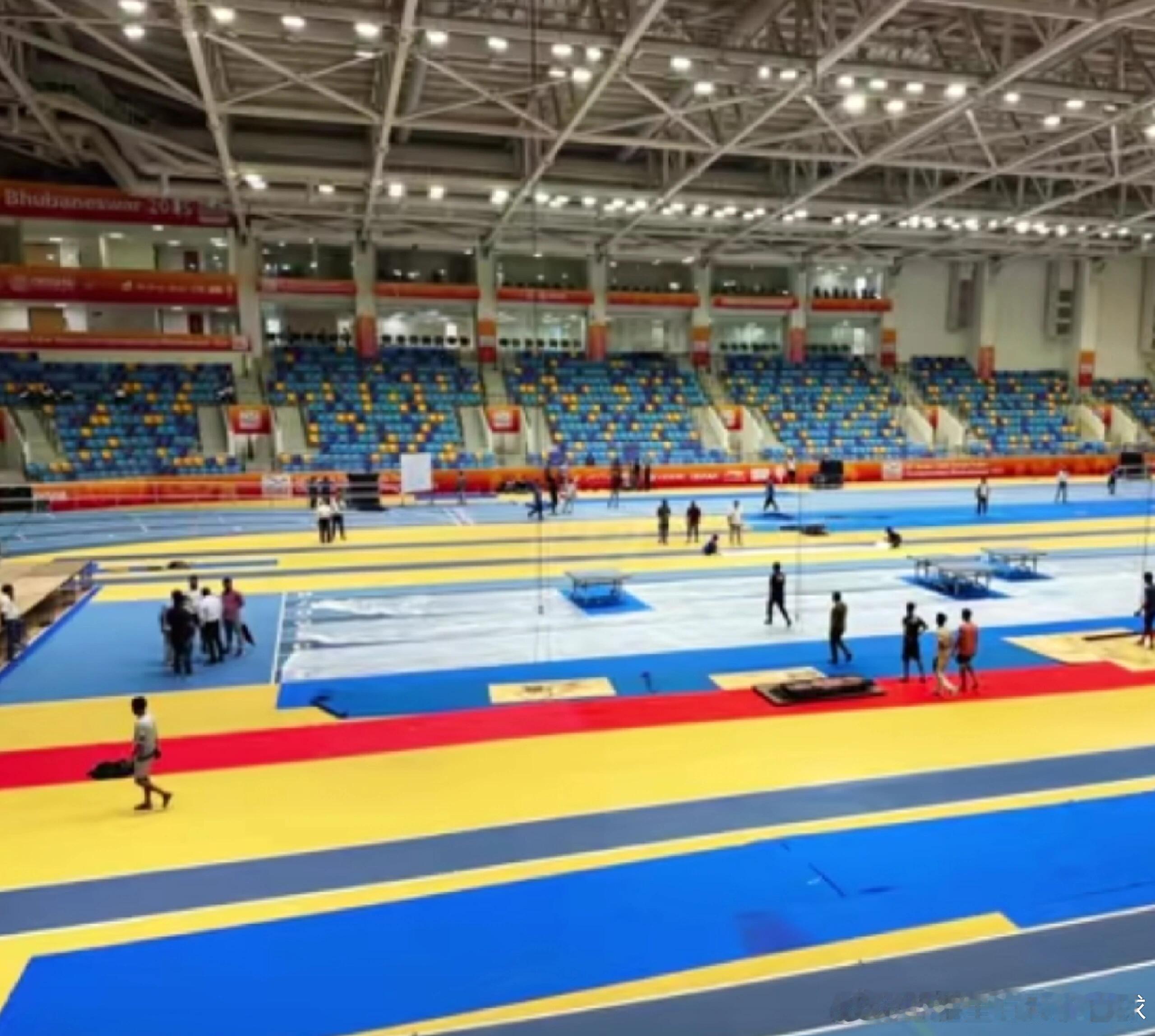 乒乓球印度亚锦赛比赛场馆,铺地胶中……