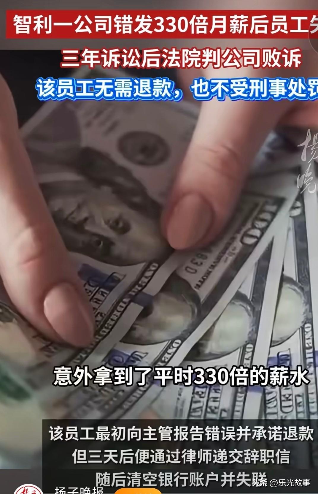 错发123万工资,员工揣钱跑路竟不用还?智利这起判决直接颠覆认知!月薪3700元