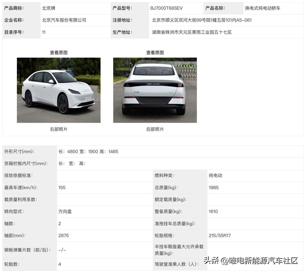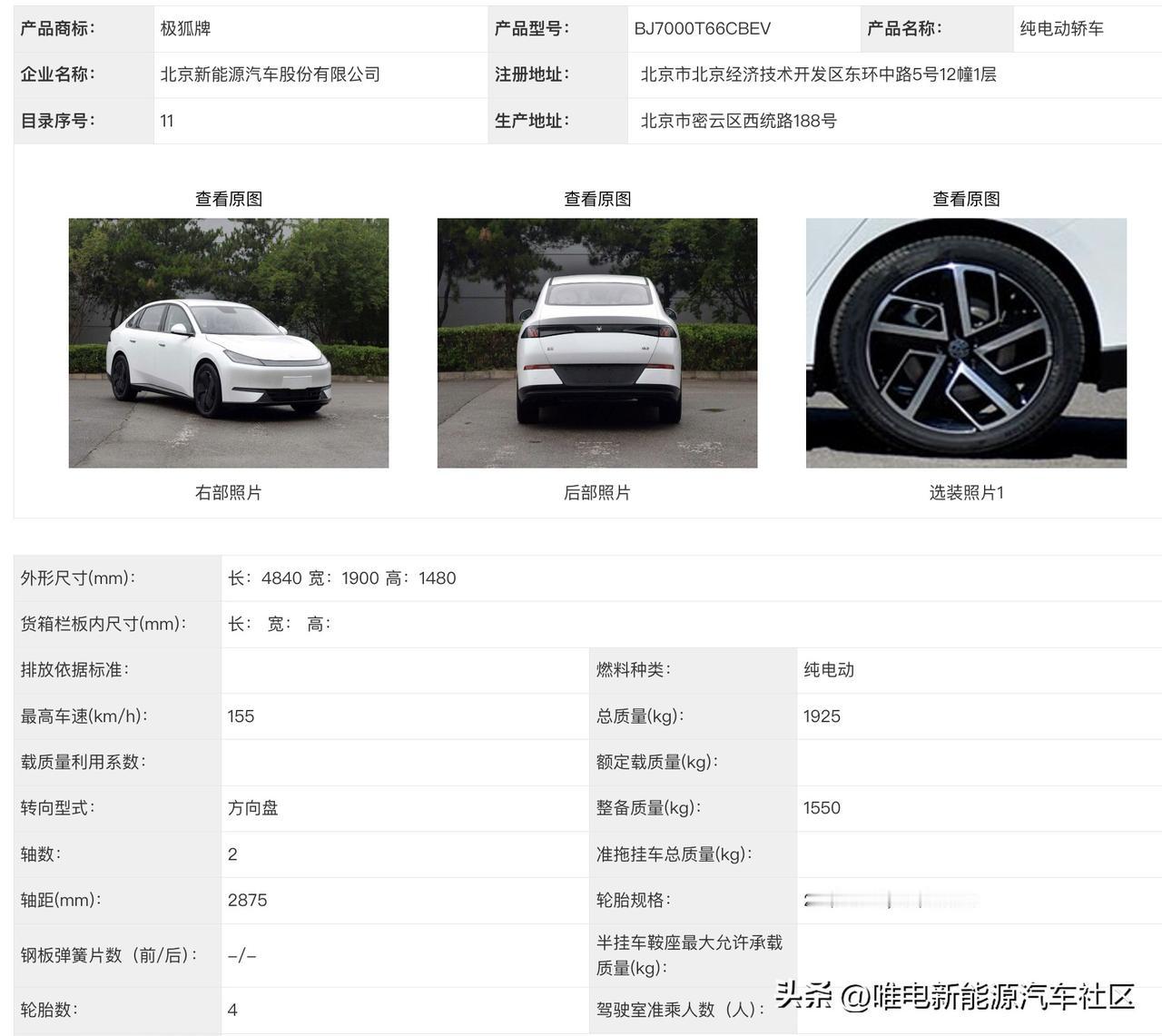 一代网约神车北汽EU系列终于上新了,图片比较模糊,隐隐约约看上去是EU8[思考]? 车身尺寸4850×1900×1485mm,轴距2875mm,妥妥的之前申报过的极狐S3青春版,贯穿灯的简配有Model Y的味道,还支持换电[思考]