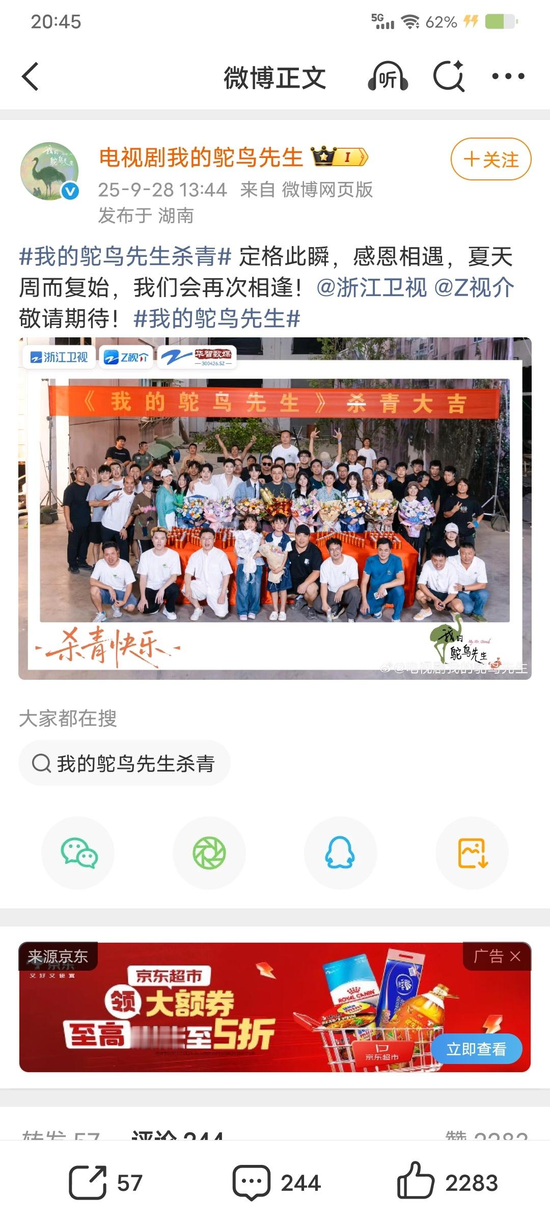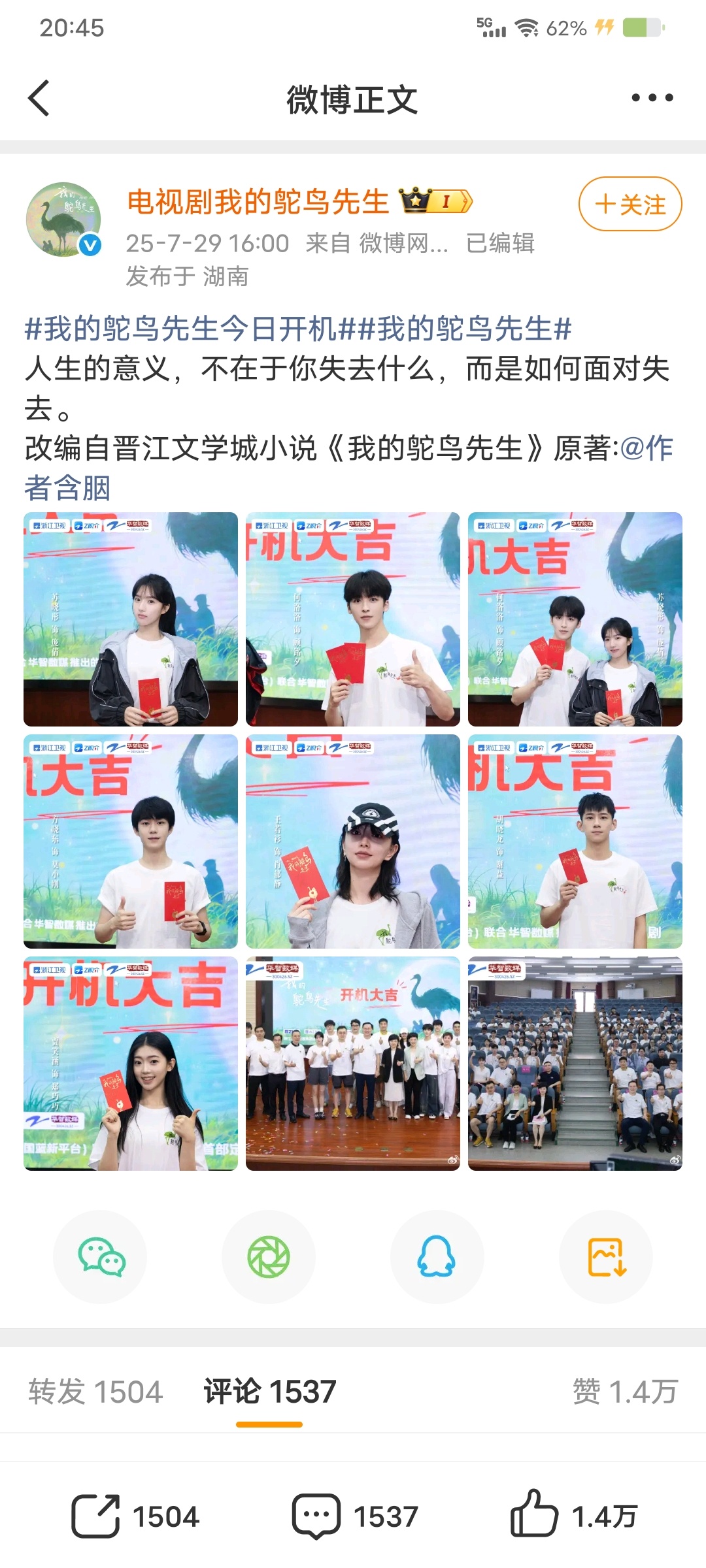 推文[超话] 刚才刷xhs,有帖子说苏晓彤的剧什么时候能抬上来啊,海报上有《我的鸵鸟先生》。啊,这个剧什么时候开拍的,我一点印象都没有,不知不觉间已经杀青了。