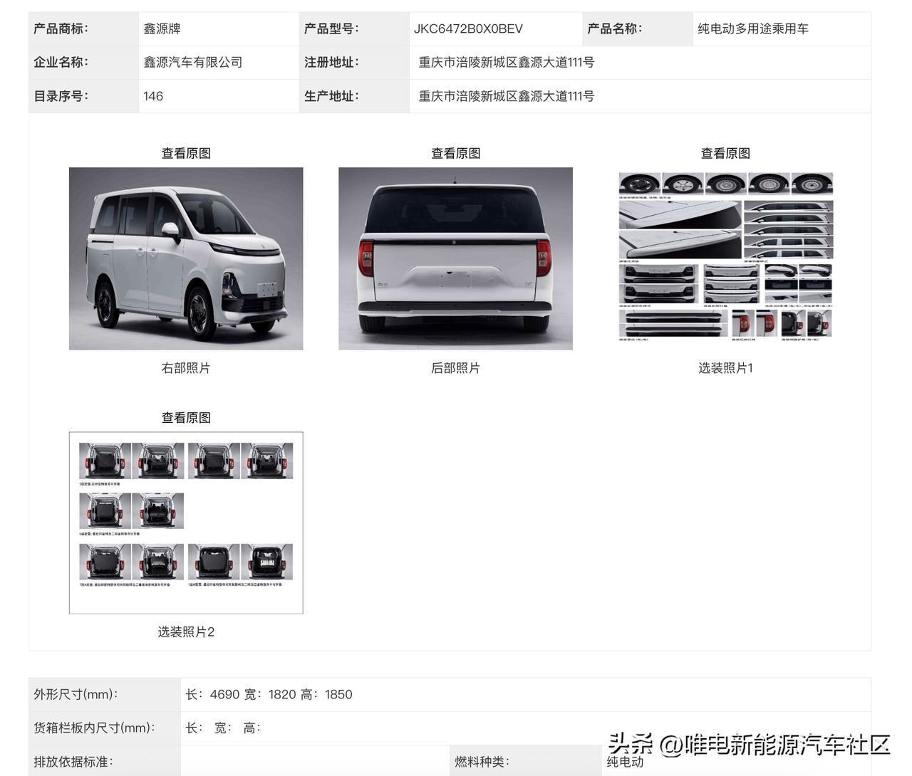乍眼一看还以为理想出MPV了[泪奔][泪奔][泪奔] 鑫源推出的电动面包车116申报[思考]车身尺寸4690×1820×1850mm,轴距2890mm,提供五/六/七座布局[思考] 搭载75kW汇川电机和弗迪磷酸铁锂电池[思考] 还采用了新logo,没有用其他车型的SRM车标[思考]