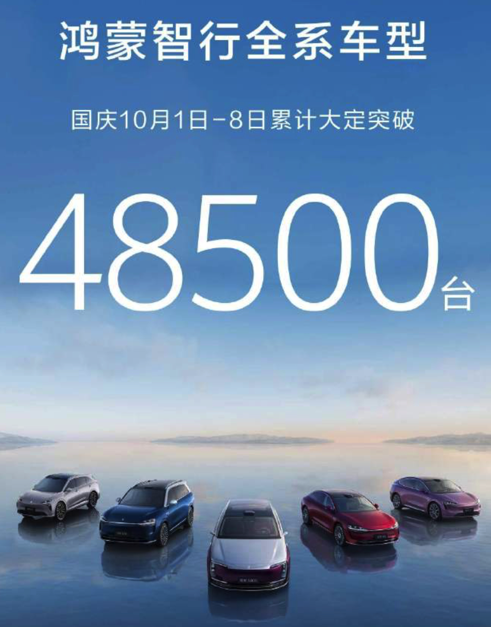 国庆假期8天,鸿蒙智行累计大定突破48,500台,日均6,000台这个成