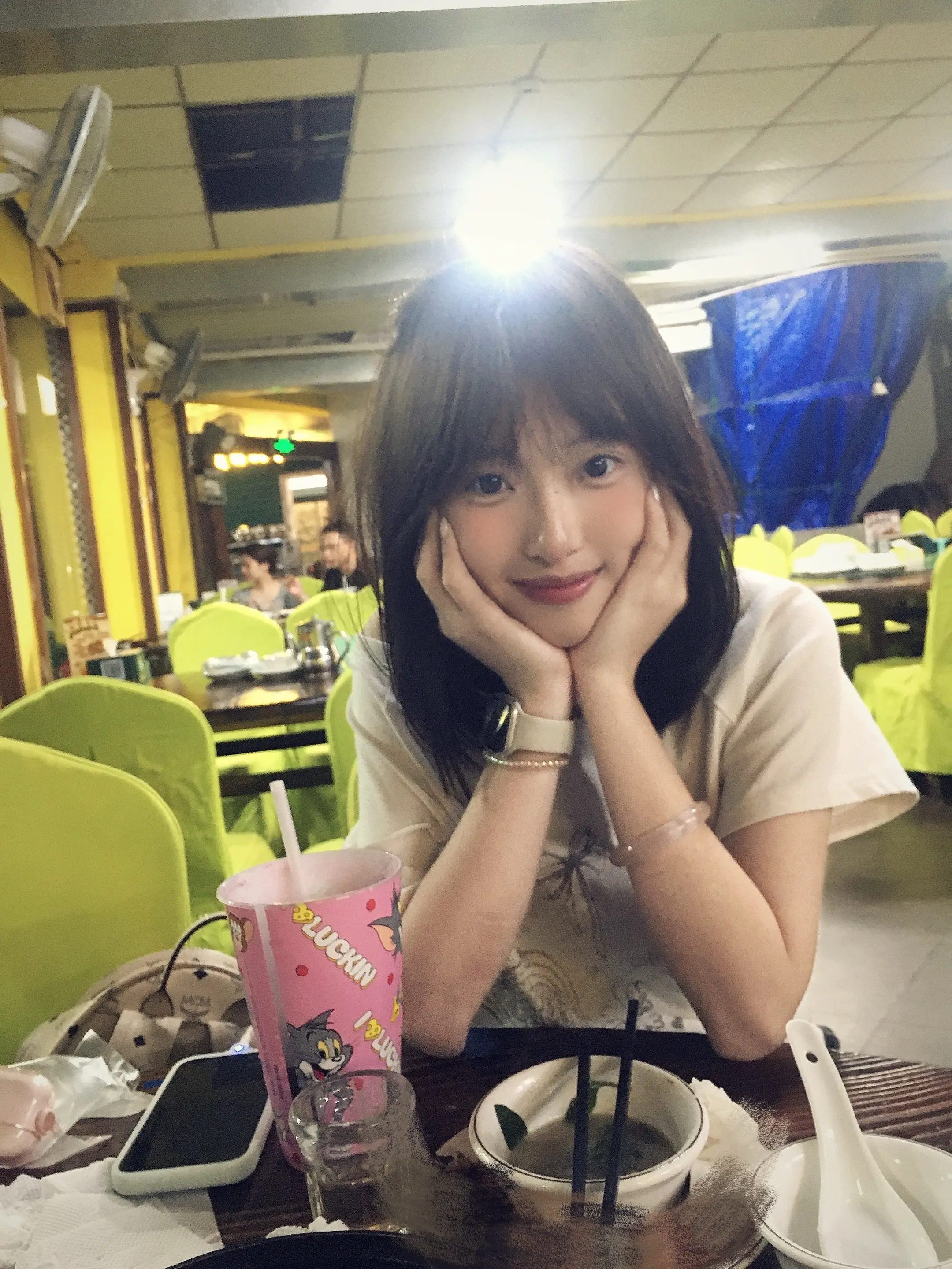 陈瑶秋日穿搭,咖啡色背心牛仔,轻曼时尚