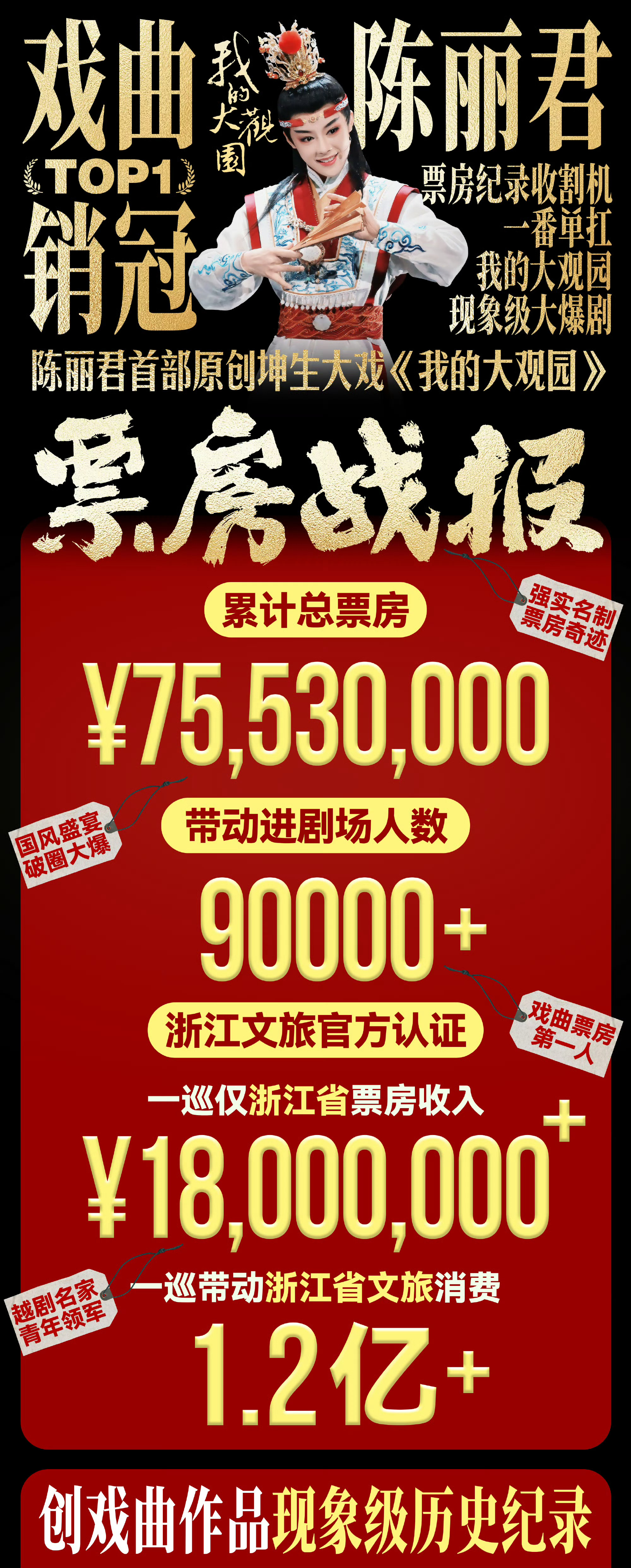 陈丽君我的大观园国庆五场演出票房达890万元,售票10028张,场均观众破2000人,又破纪录了[送花花]