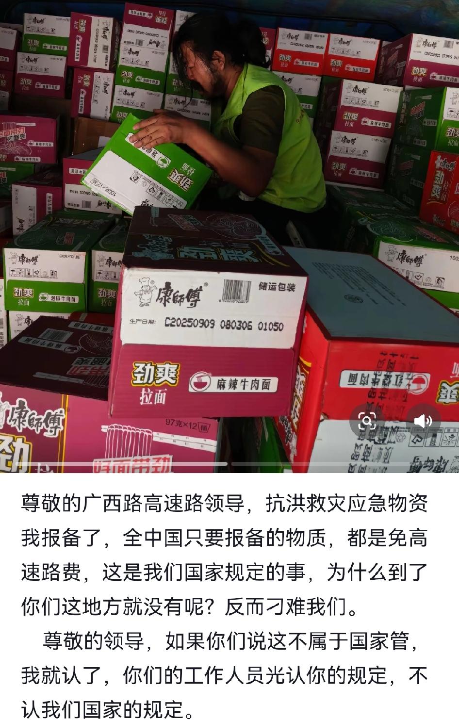 胡雷捐救灾物资已报备,走高速还被收1180元,这家公司要火了 一边是火速奔赴灾区捐赠物资,一边是拿当地政府政策强制征收高速费,国家的法律法规和地方法律法规,该按照哪个执行?这次事件凉了救灾人的心,也让广大网友看清了某执法机构的面目。广西捷通高速科技有限公司会如何处置此次事件,我们一起关注!