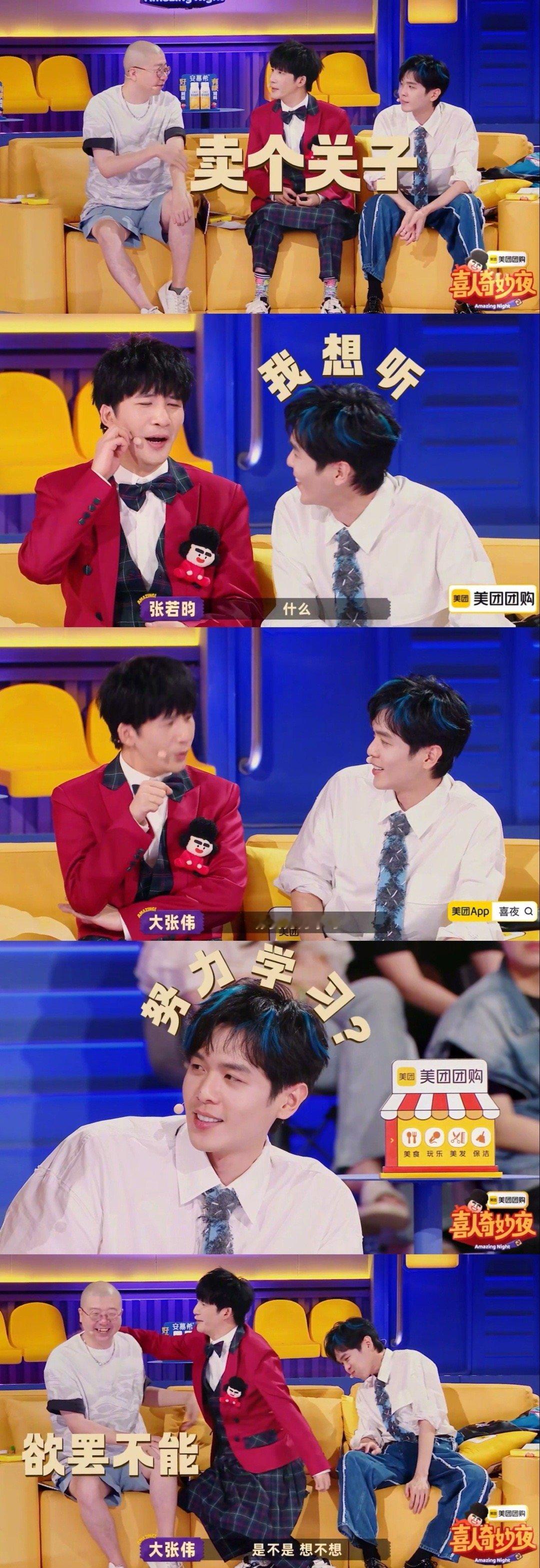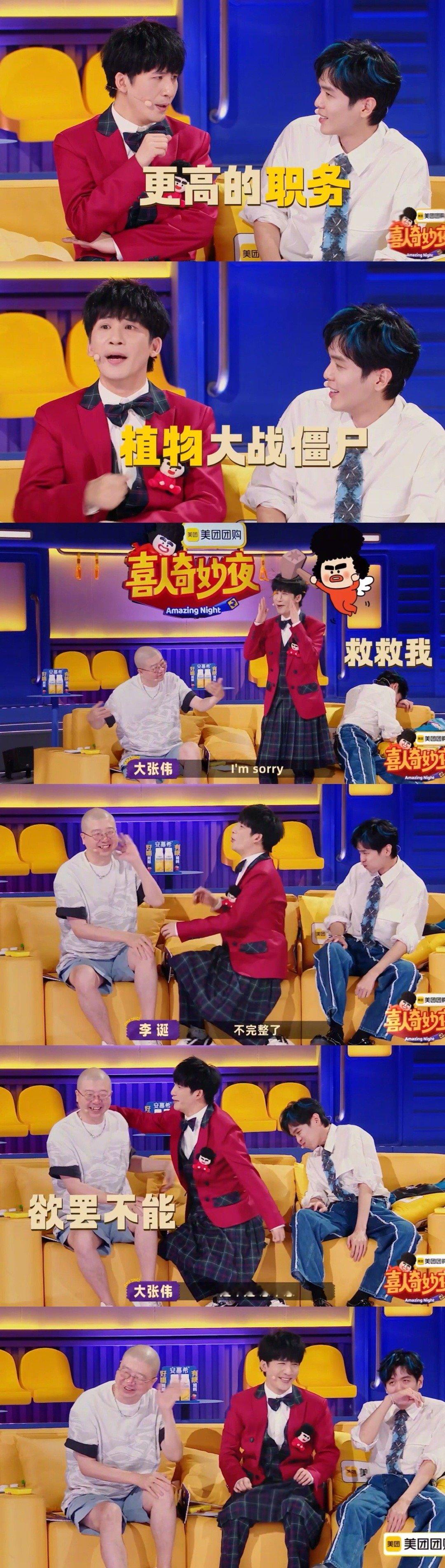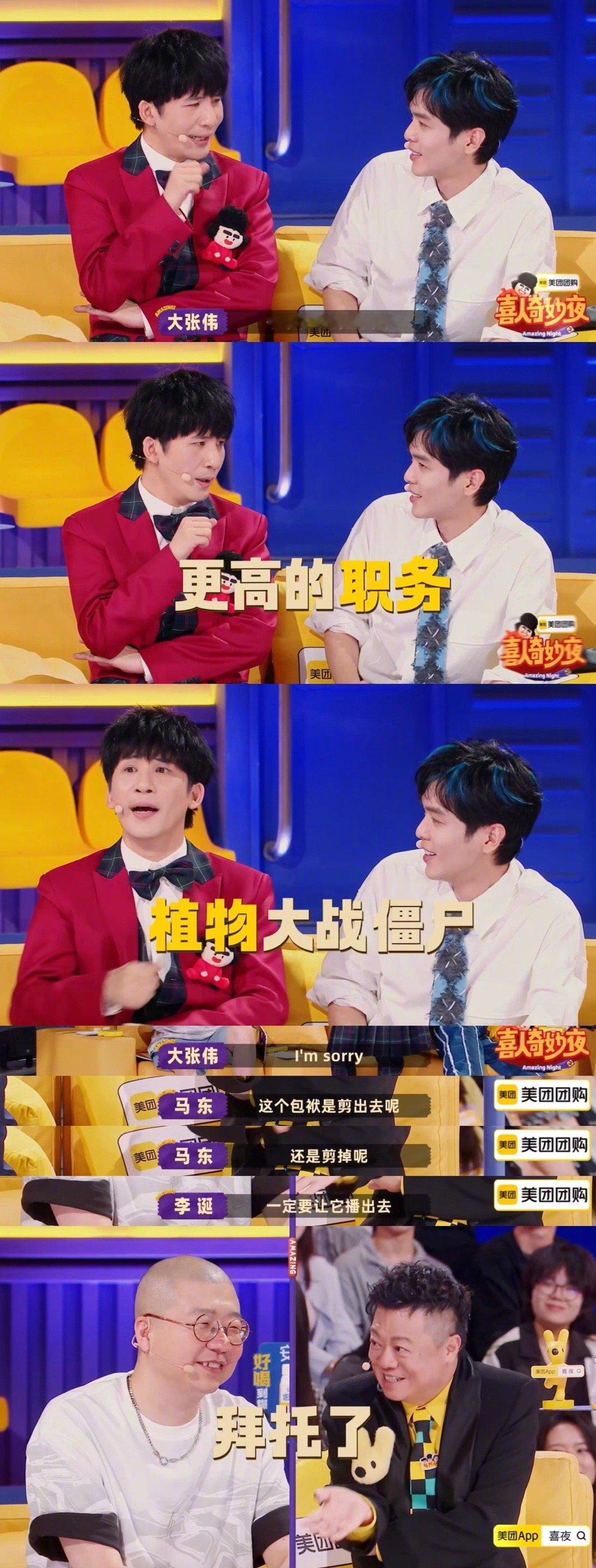 大张伟来了张若昀的笑点也来了 大张伟这"植物大战僵尸"的梗太绝了!面对僵尸要拿更高职务,一下子就把张若昀的好奇心勾起来了,追问之后才反应过来,太逗了!喜人奇妙夜
