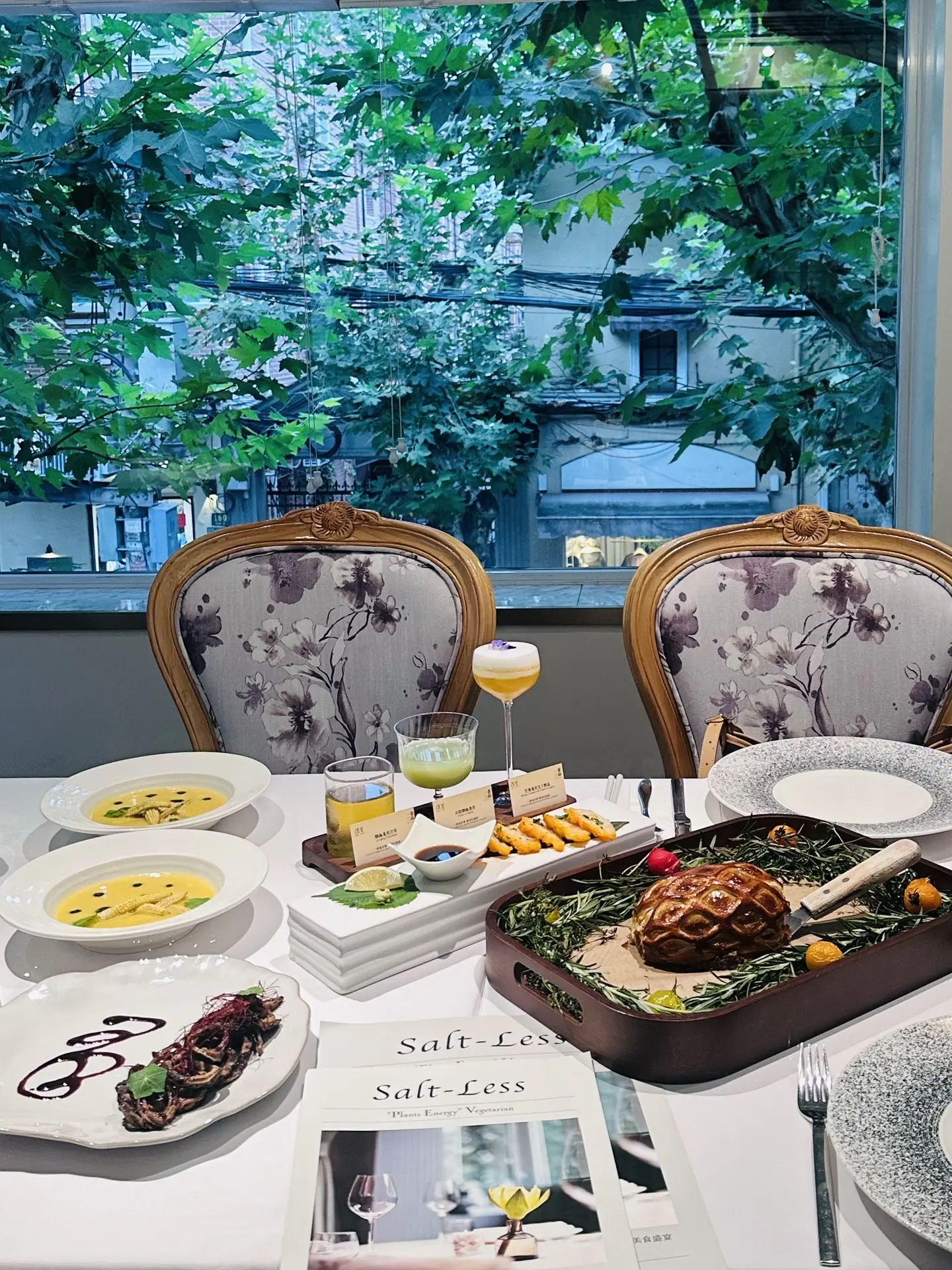上海独栋洋房里的素食漂亮饭🍴 新热打卡地 城市探索家计划 下午茶 眼镜 梨形身材 听说是原蝶舍🍴黑珍珠团队操刀的「淡盐salt-less」,一下班就来了 2f复古薄荷绿窗框配满墙绿植,坐在这儿拍照像闯进梧桐树版莫奈花园,随手拍都是氛围感💯