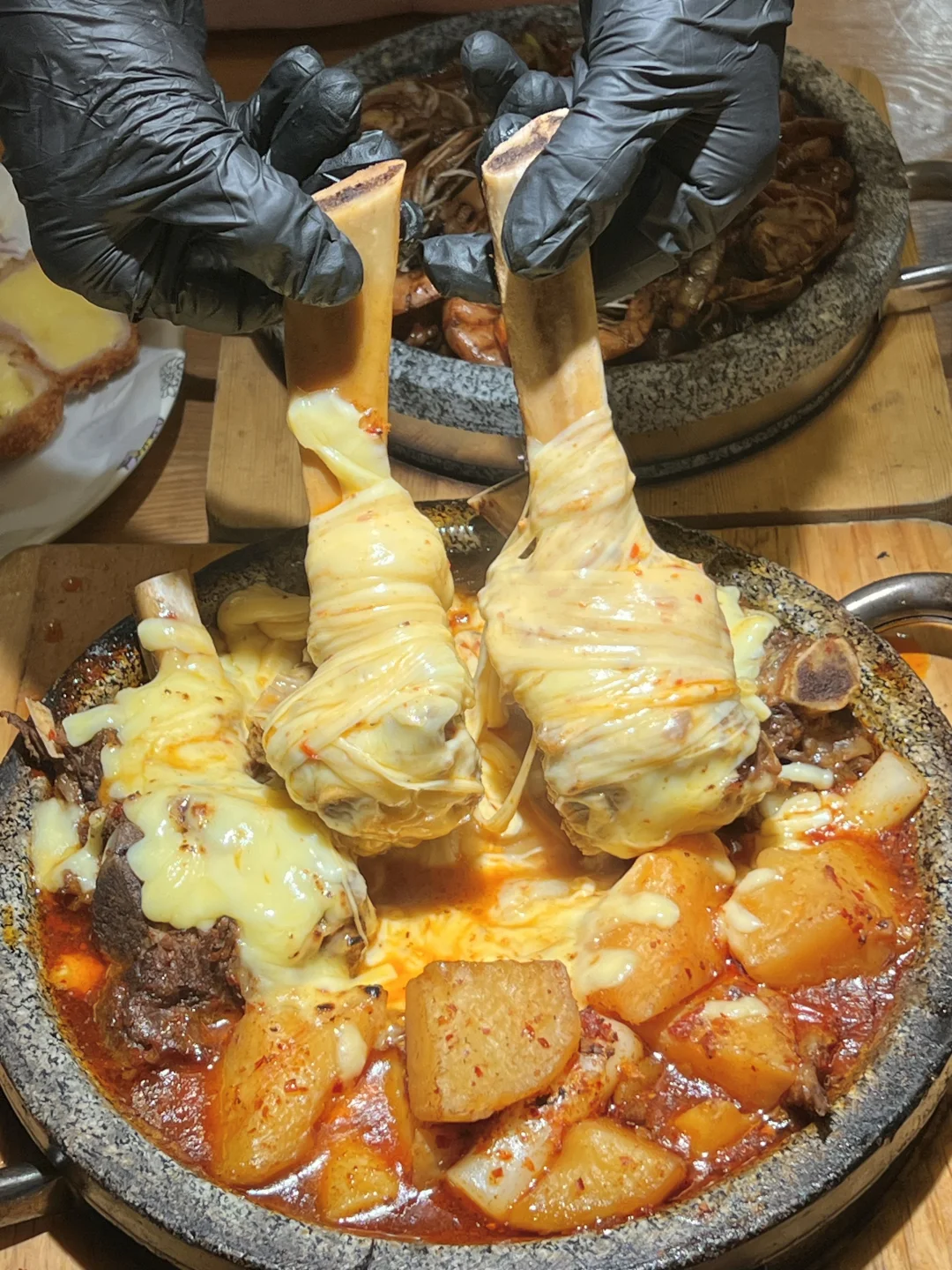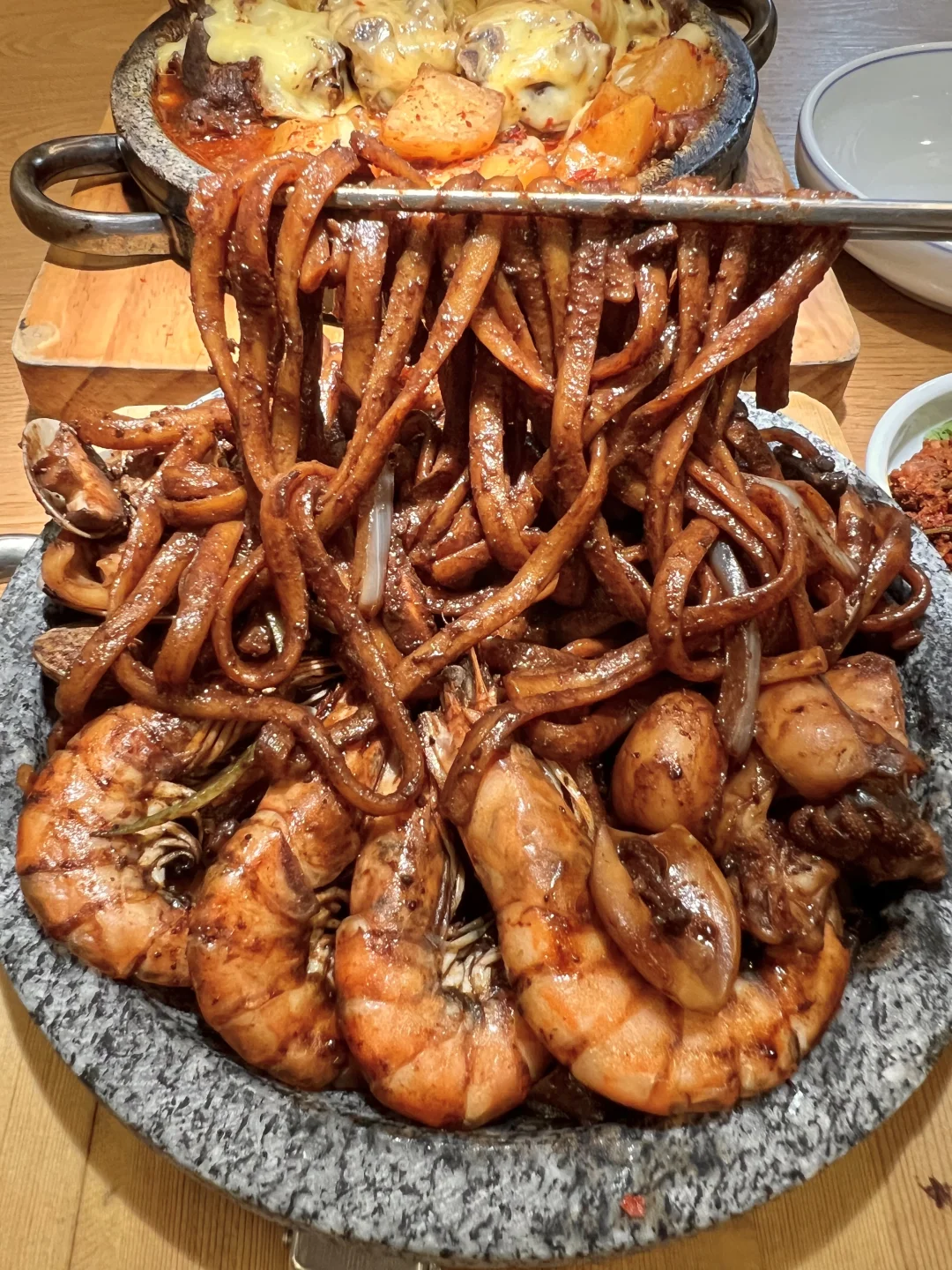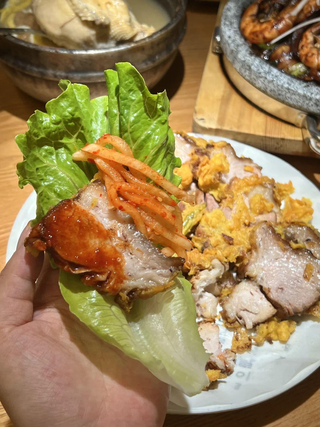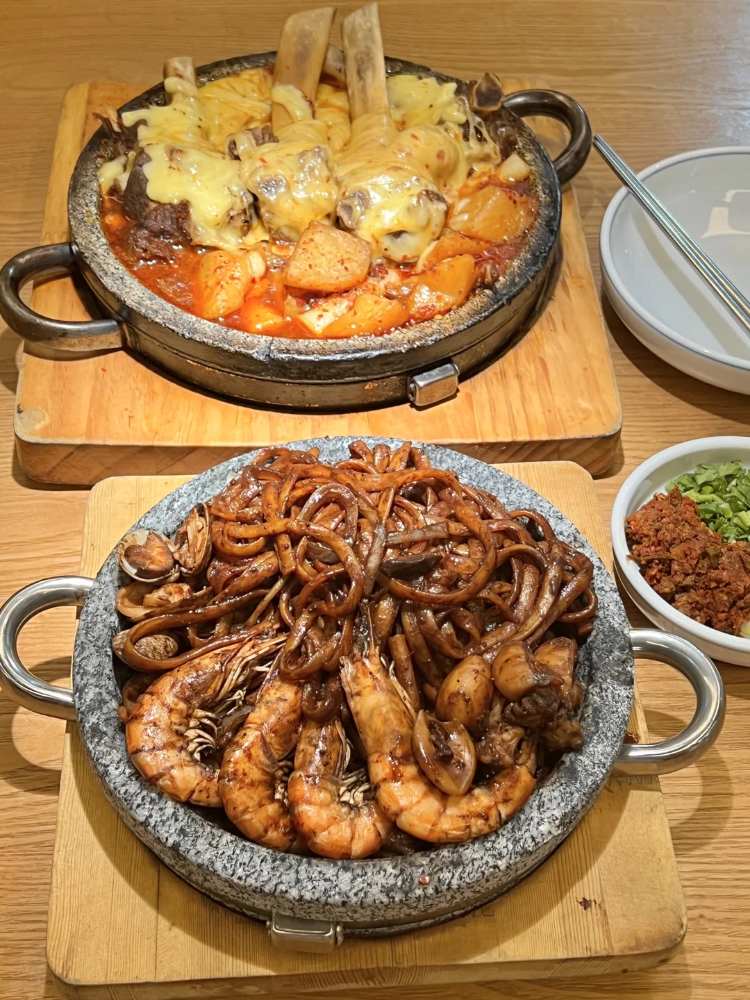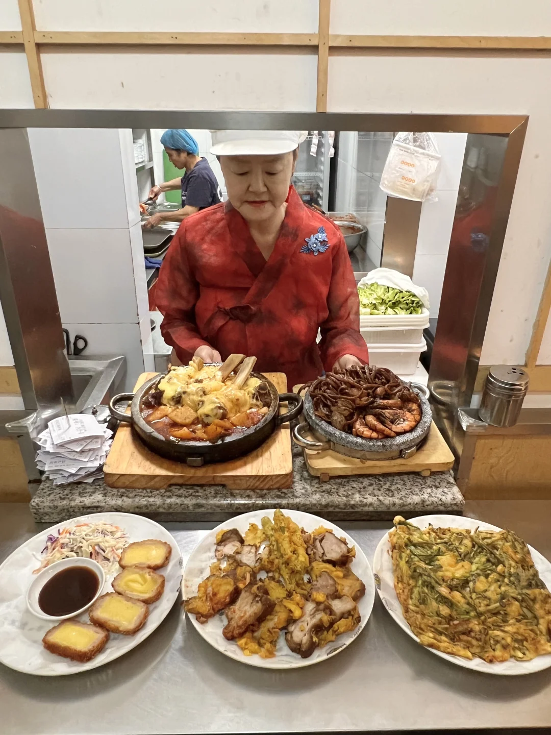 连做料理的师傅都是朝鲜族奶奶!值得我坐20站地铁过来!!海鲜炸酱面、炸猪蹄、参鸡汤、芝士猪排!!一定要趁热吃!每一个都好地道!!店里还有超多小菜可以🆓无限续!😄😄📍虎三韩食