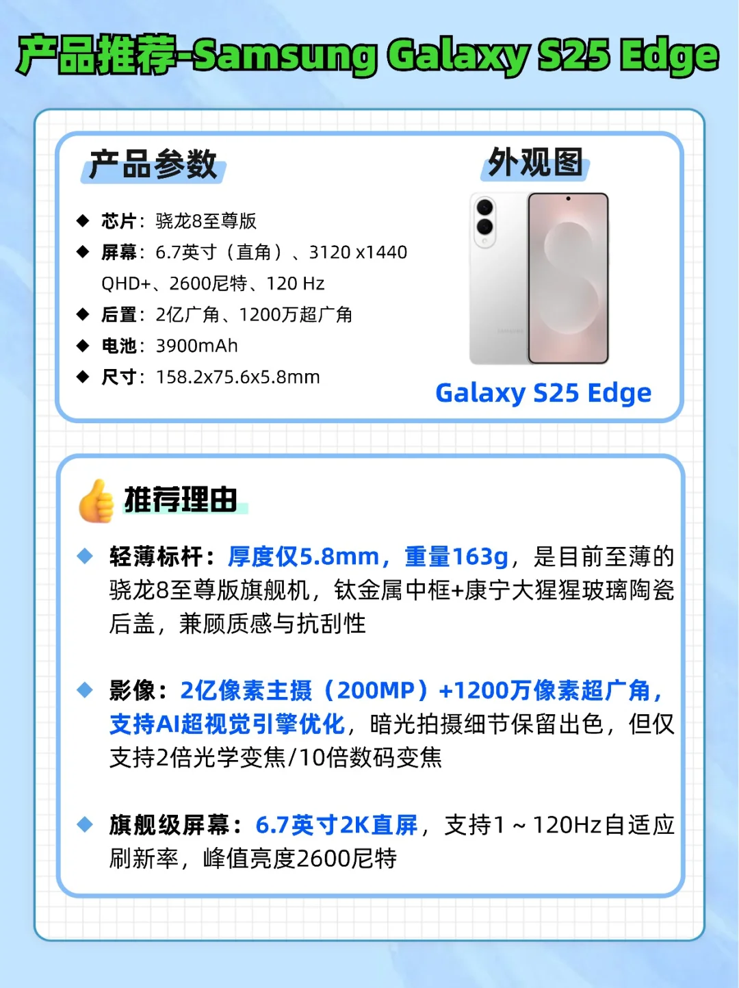 颜值党/轻薄控→S25 Edge(超薄+颜值天花板)