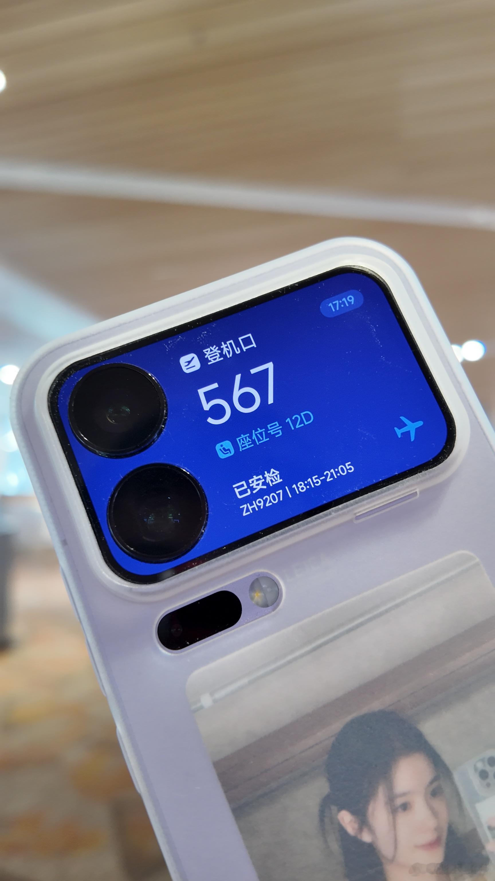 这体验感绝了,谁懂一个本身走两步就要确认一下登机口/座位号的人,现在直接就把手机翻过来拿着,想看随时看就好了。(彻底省去解锁手机+打开APP的步骤)