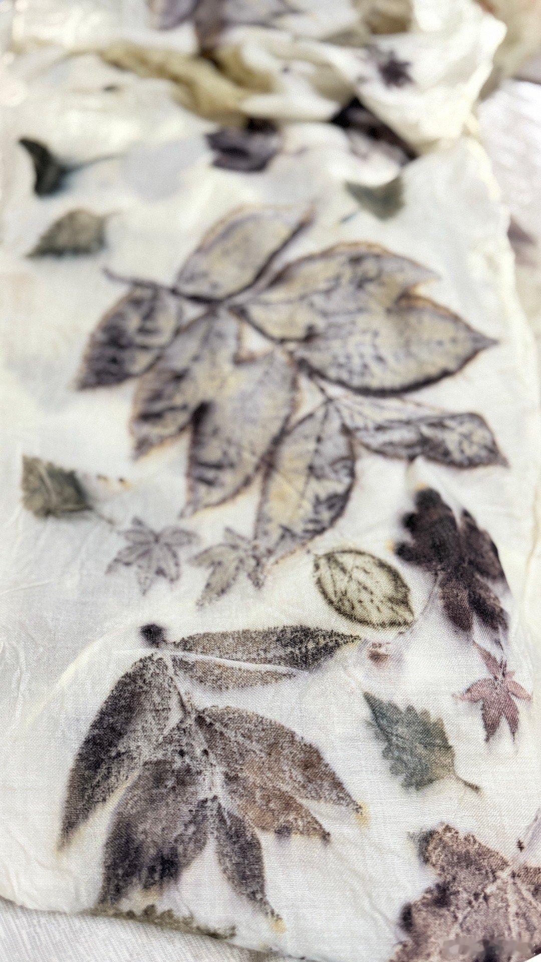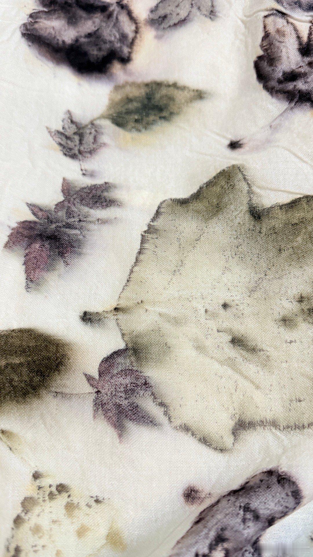 又染了一条丝巾,很满意。跑北龙湖湿地公园摘了一些适合热转印的树叶,打算再染一条羊