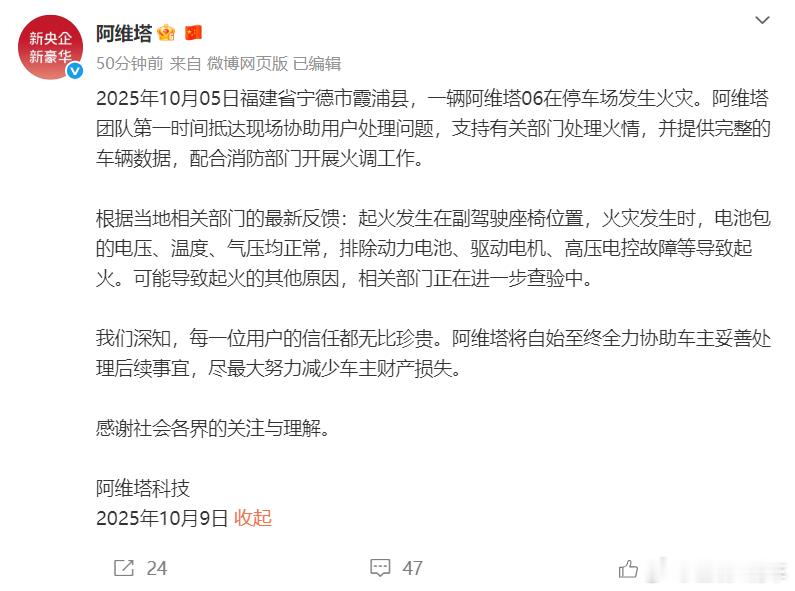 中国汽车维权先锋 阿维塔“火烧连营”,事发福建,官方回应。