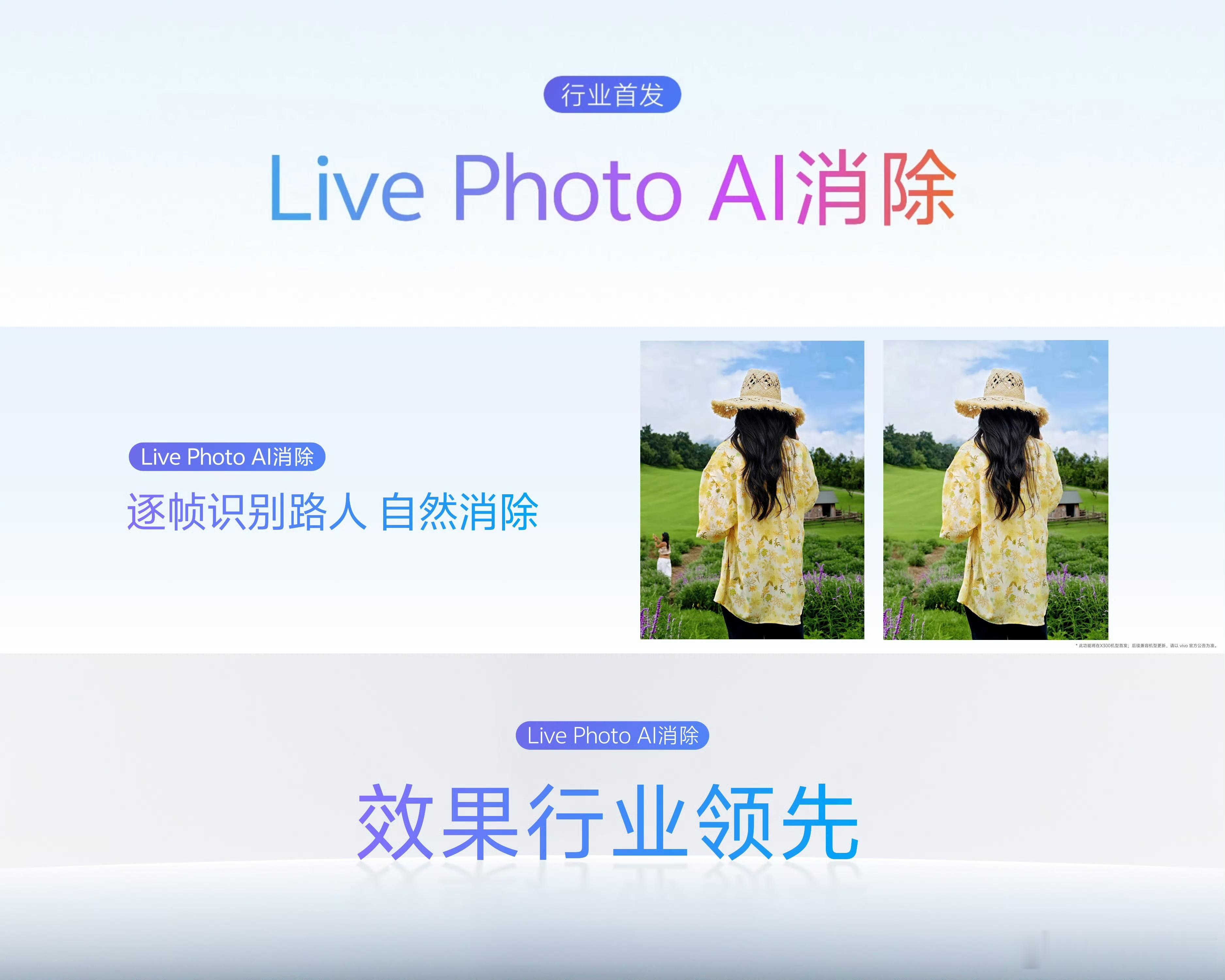 vivo带来行业首发的 Live Photo AI 消除。它能智能圈选,逐帧识别路人、自然处理,让动态画面流畅无暇。为了让效果更自然,vivo自研Live Photo消除大模型,改善消除和填补过程中的常见痛点问题,整体效果行业领先