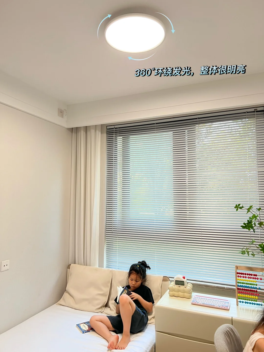 ▪️给卧室换一盏全光谱护眼吸顶灯还是很有必要的,普通吸顶灯只是中心光源发光,所以房间里存在很多照不到的地方,形成暗区。