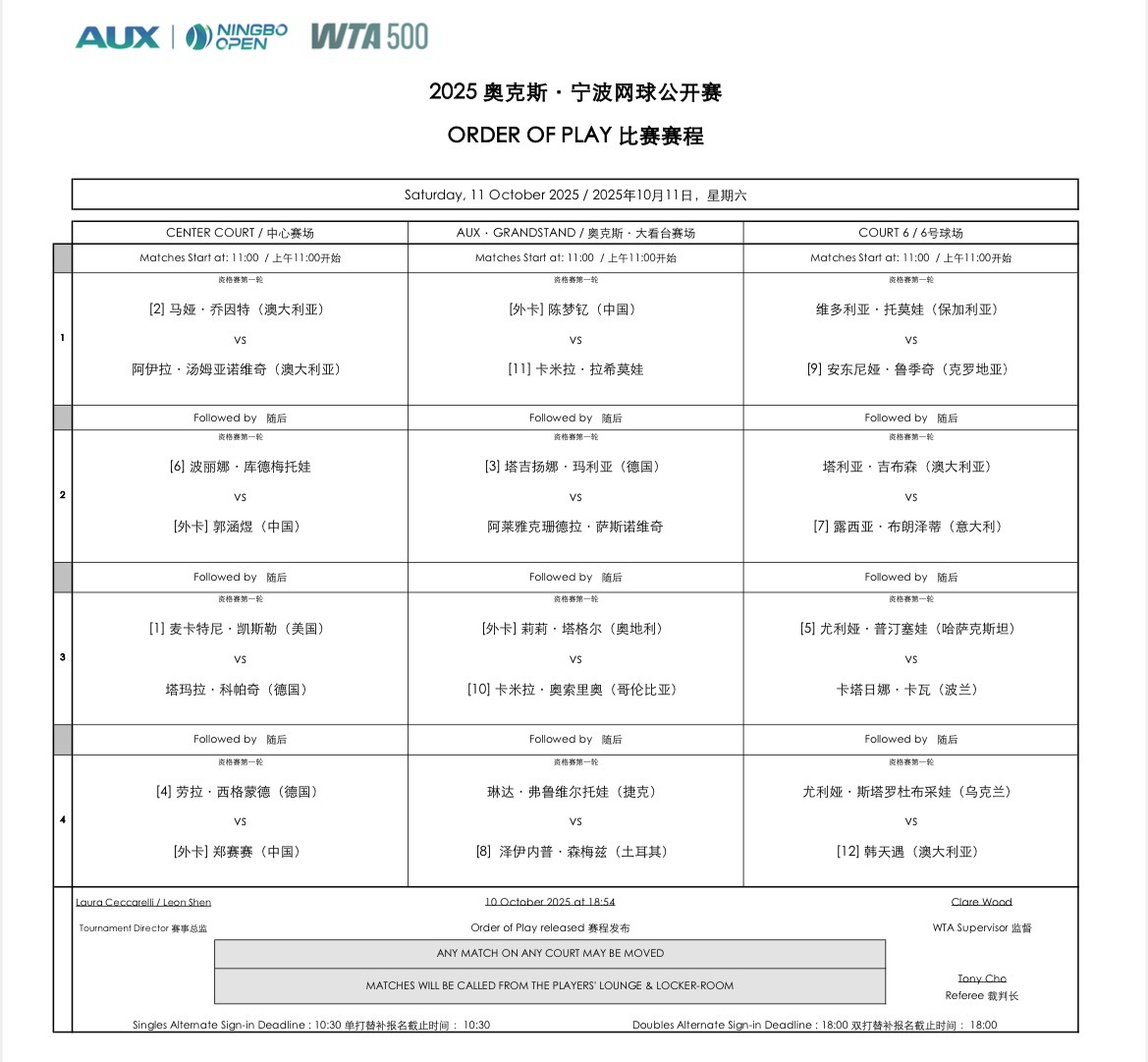 宁波网球公开赛网球talking大会今日赛程安排,资格赛开打。wta[超话]
