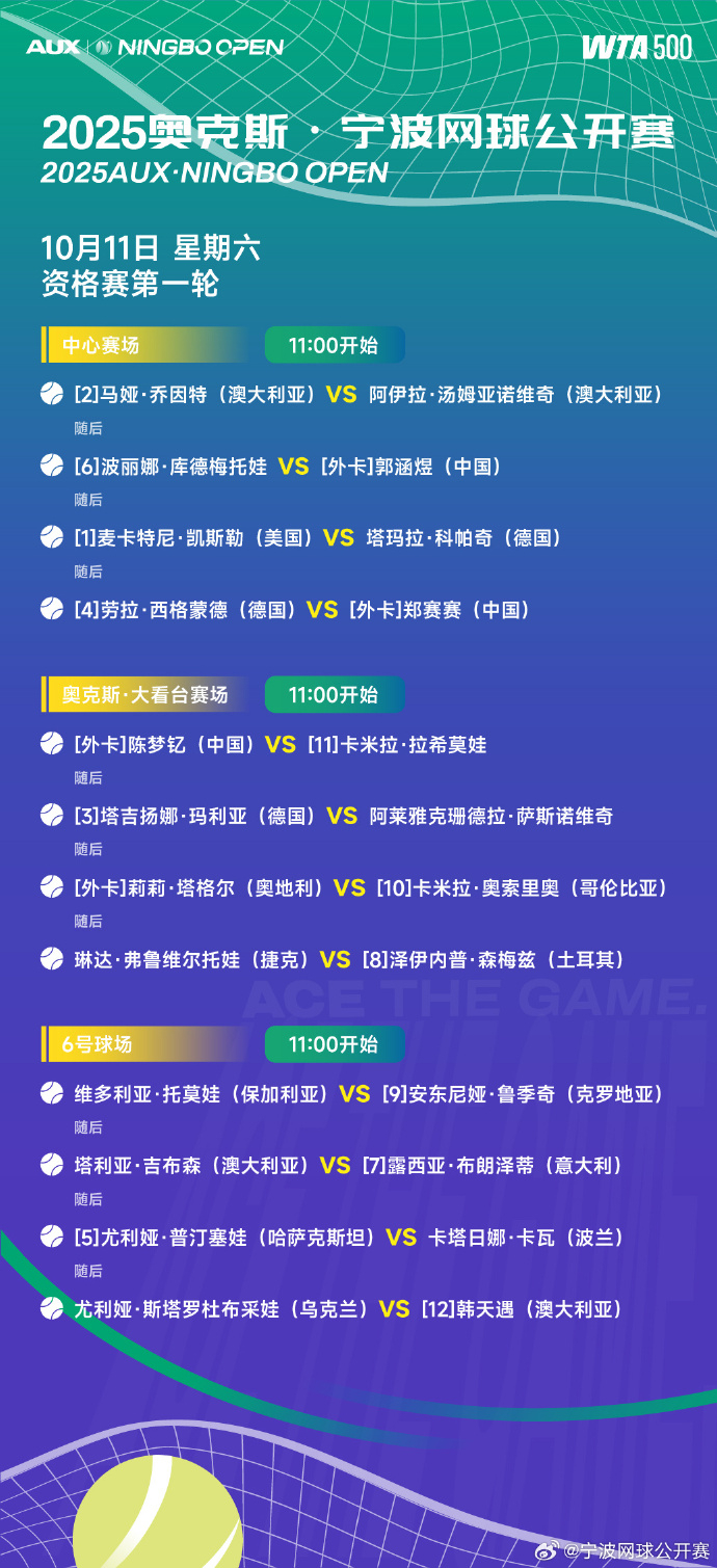 焦点战:西格蒙德vs郑赛赛、郭涵煜vs波丽娜·库德梅托娃、韩天遇vs斯塔罗杜布采娃,乔因特vs汤姆亚诺维奇
