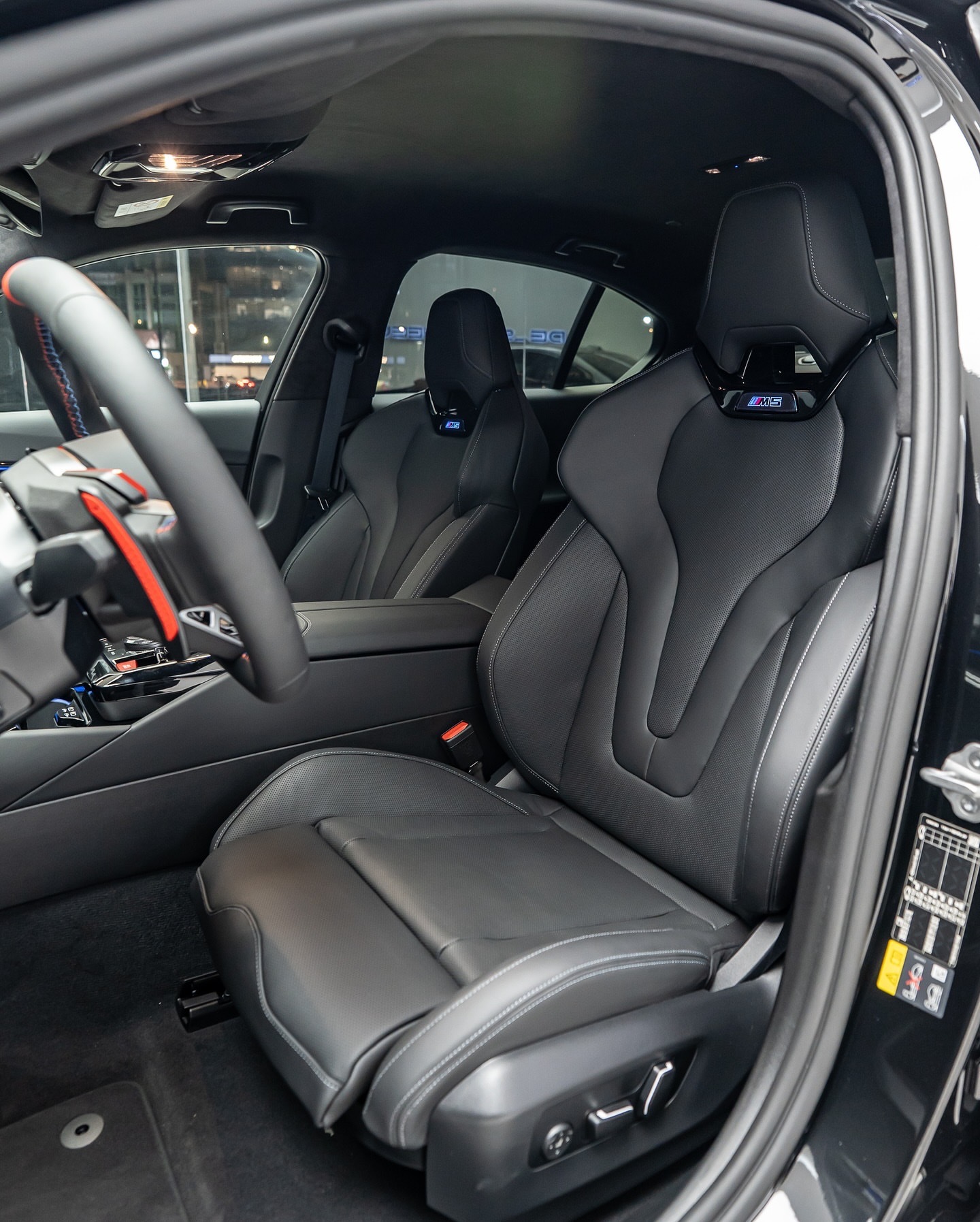 ▫️黑色美利奴皮革打孔 M 运动型座椅,带白色缝线